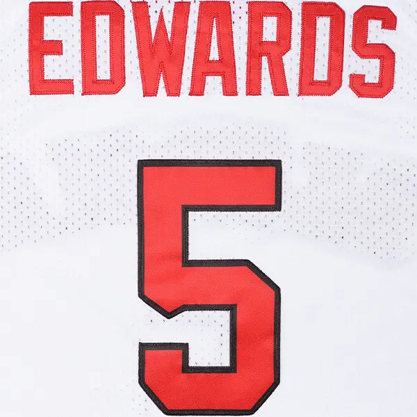 Men's #5 White Basketball Jersey, featuring classic embroidered lettering and numbers, a relaxed crew neck basketball vest, and breathable, sweat-wicking polyester fiber. A comfortable top suitable for training and games.