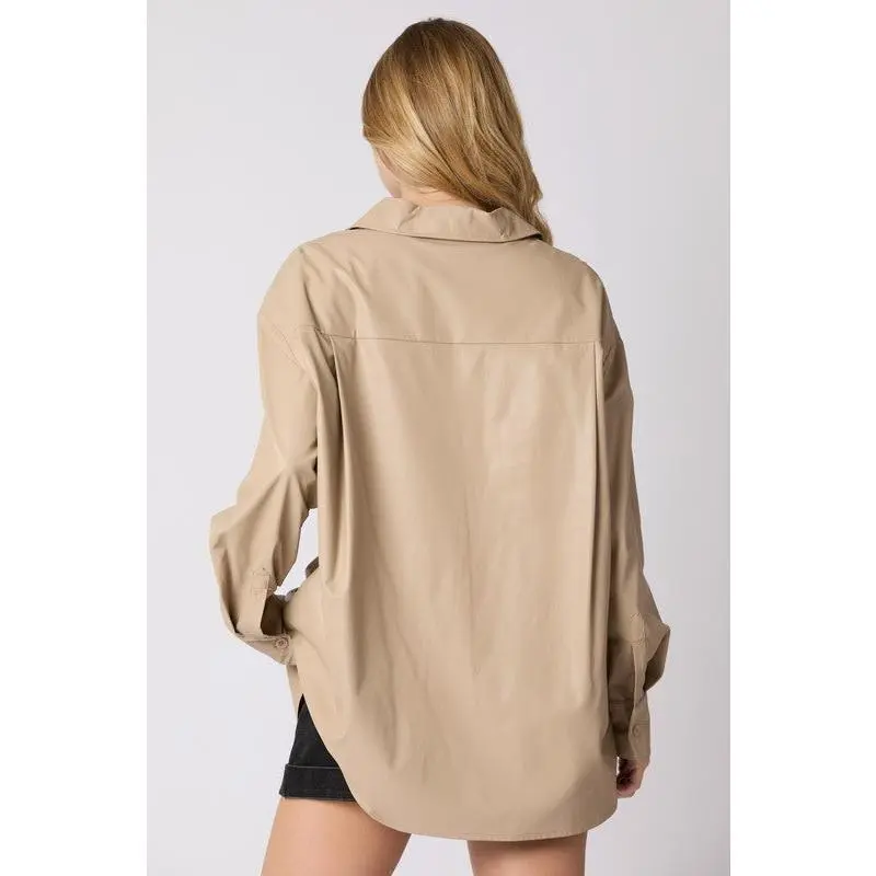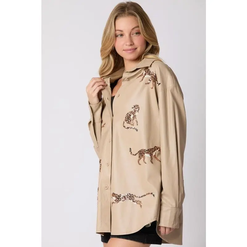Leather Cheetah Sequins Embroidery Shacket