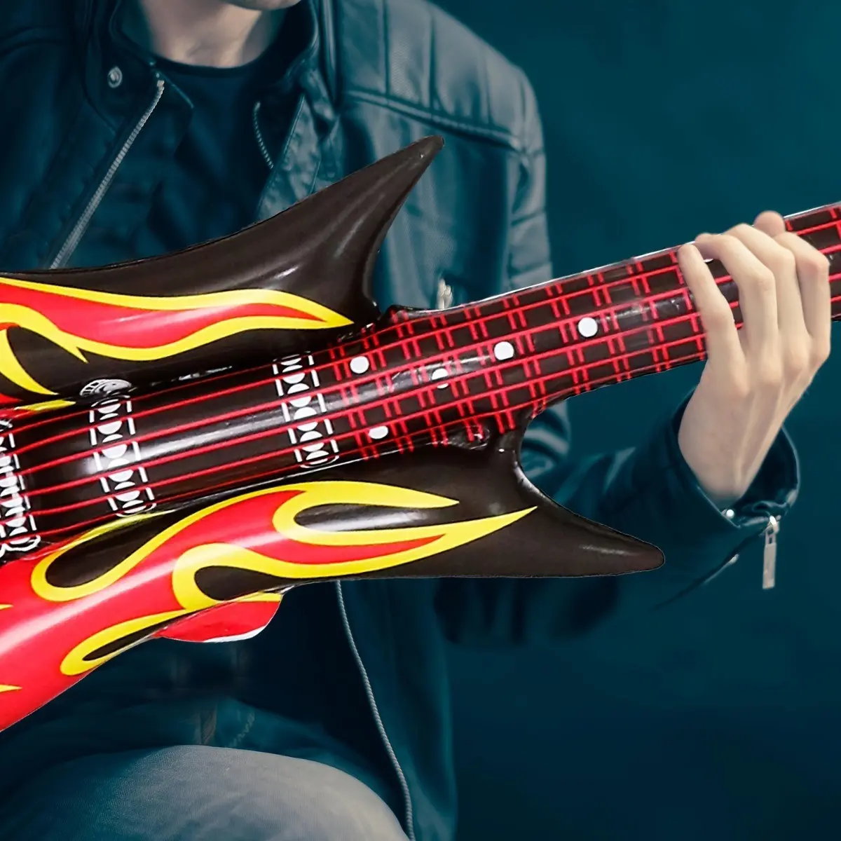 6 Piece Inflatable Rock Guitar Toy Set, Punk Flame Pattern, Lightweight Portable, Perfect for Birthday Parties, Bar Decorations, Kids Music Play