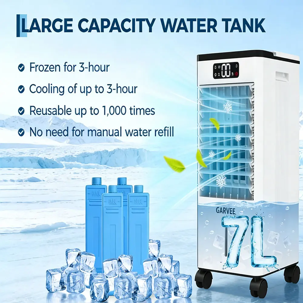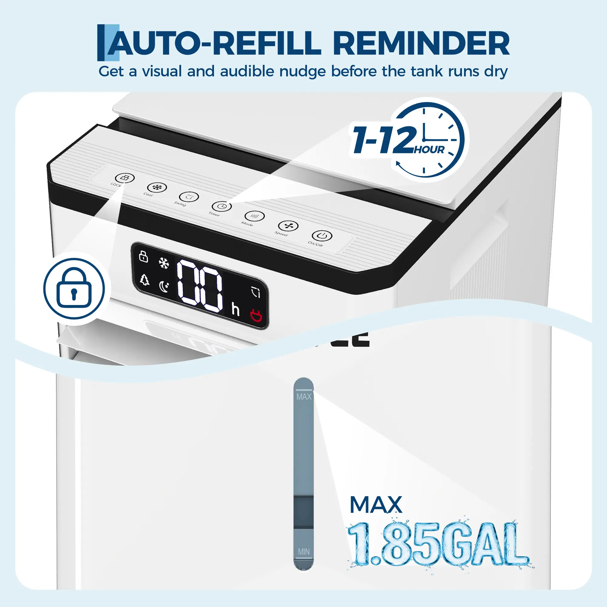 Extra Large 1.85 Gal Water Tank: The generous 7L water tank provides up to 10-12 hours of continuous cooling, eliminating the need for frequent refills. Ideal for all-night use, keeping your bedroom cool and humidified throughout your sleep.