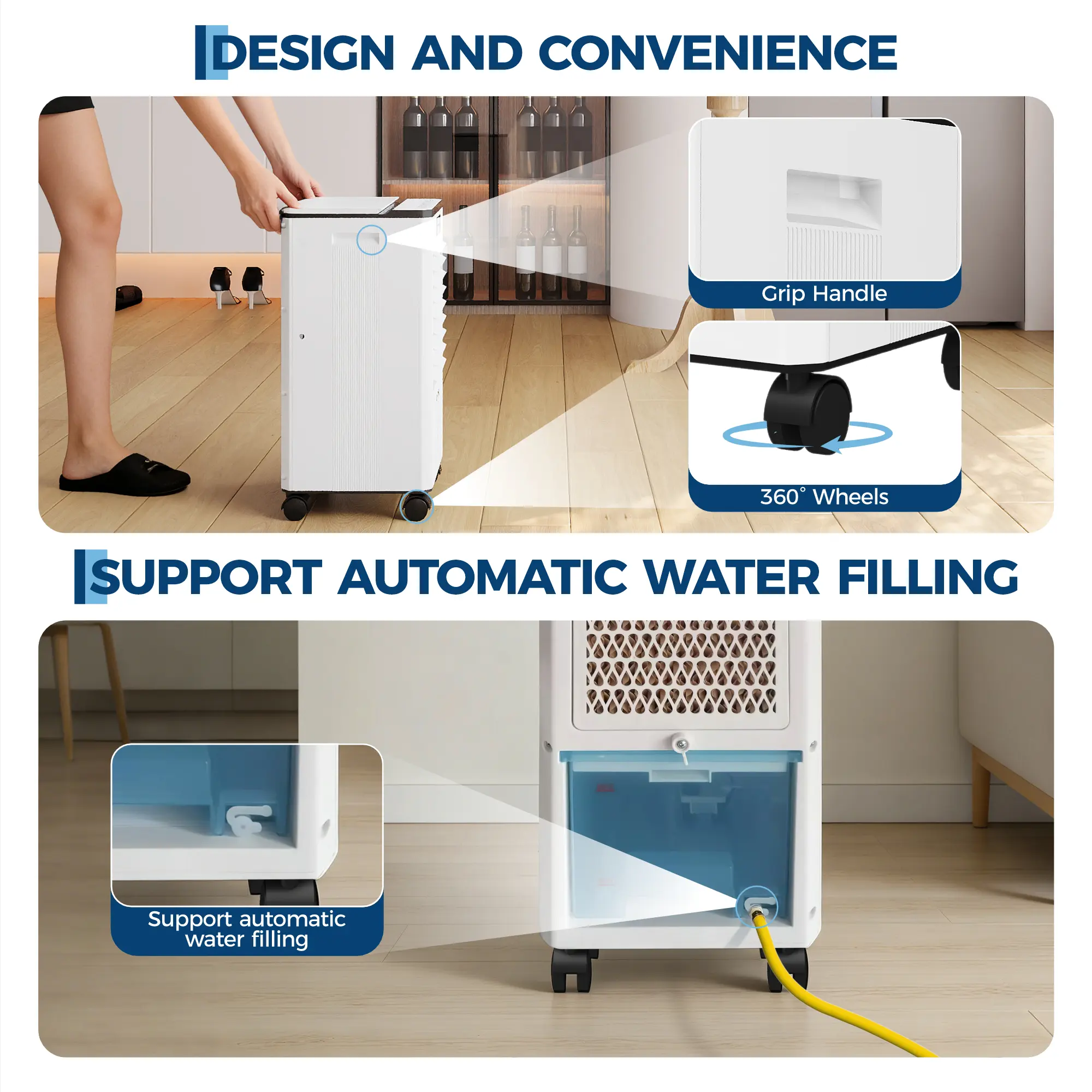Portable & Space-Saving Design: Equipped with 360° universal wheels and a built-in handle, this compact air cooler can be easily moved from your living room to the bedroom or office. Its slim profile fits perfectly in tight spaces, dorms, and RVs.