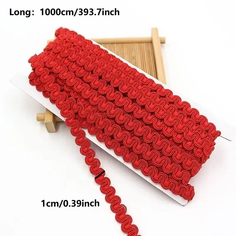 Multicolor S-Shaped Wave Trim Ribbon, 10m Long X 1cm Wide, Ideal for Clothing Curtains Pillows Sofa Edging Sewing Supplies