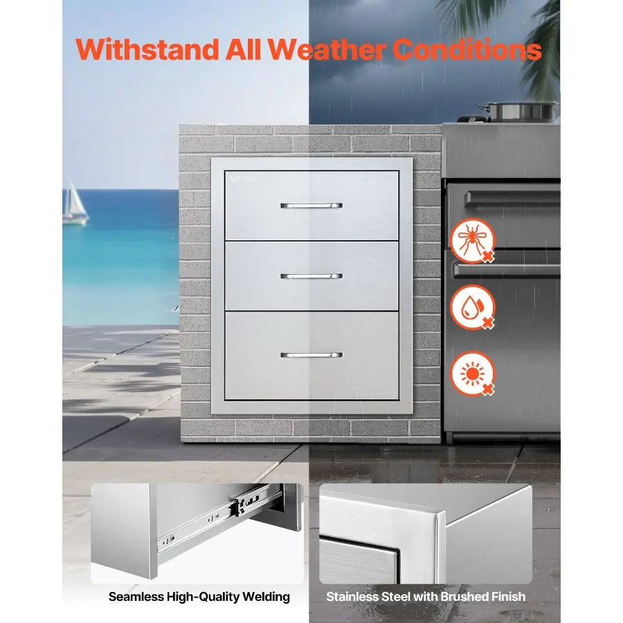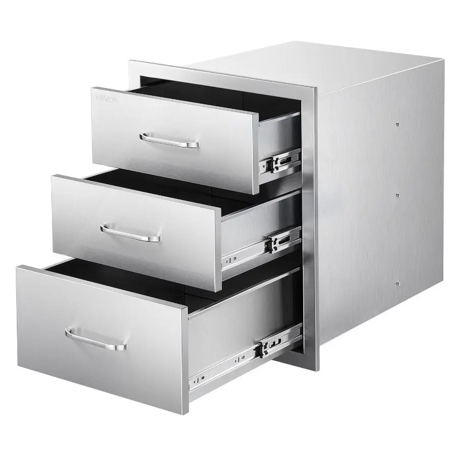 VEVOR Outdoor Kitchen Drawers 18.11 Wx 23.23 Dx 23.23 H, Triple-Access Stainless Steel Modular Drawer Cabinet with Handles, BBQ Island Drawer for Outdoor Kitchen BBQ Island Patio Grill Station