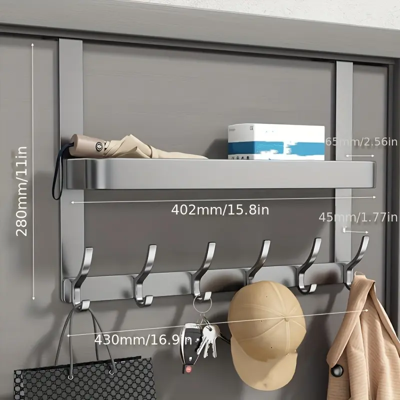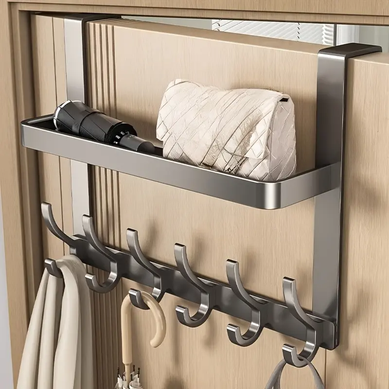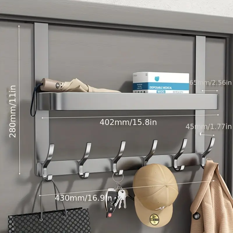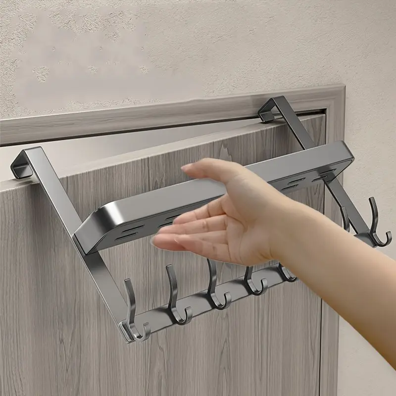 5. 1 multifunctional over-the-door hook with storage rack - carbon steel material, wall-mounted storage rack for bedroom and bathroom