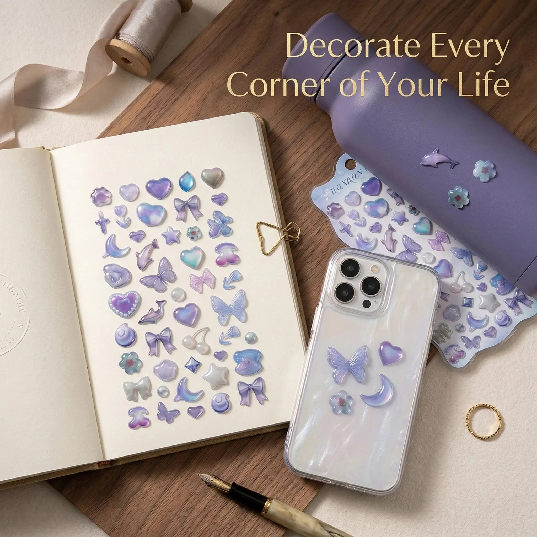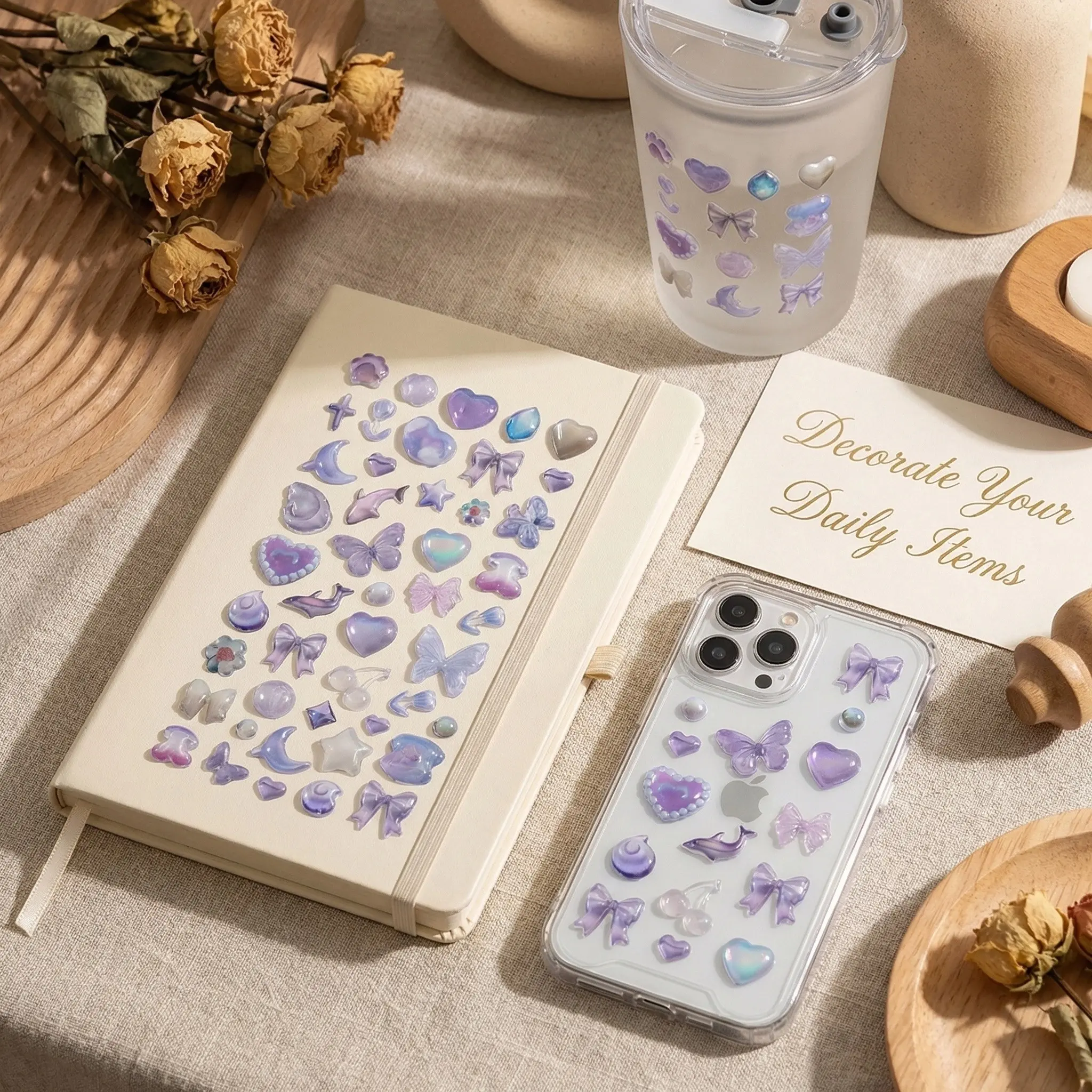 High-Quality Pressed Stickers for Scrapbooking & Notebooks, Perfect Decorative Elements for Phones & More, Durable Design