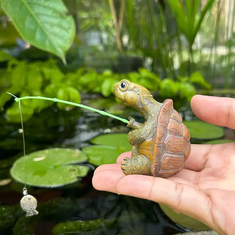 Adorable fishing turtle design, small and exquisite, easy to place on your pool edge, garden corner or potted plants.