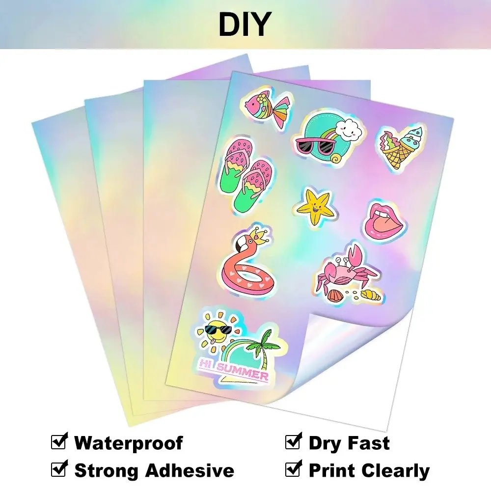 A4 Holographic Print Stickers, Matte & Glossy Surface, Inkjet Printer Compatible, Vinyl Paper Included, Ideal for DIY Photography Cards