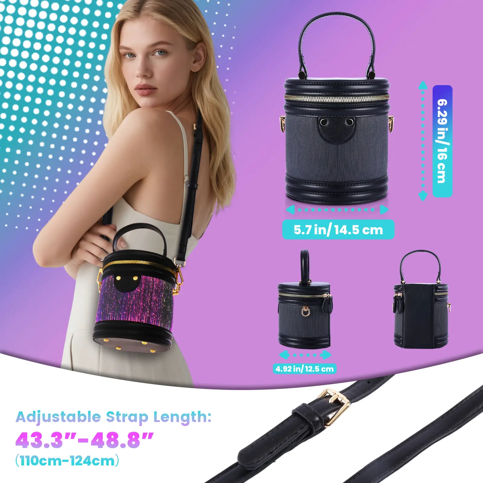 ·Strap: Adjustable, detachable crossbody strap