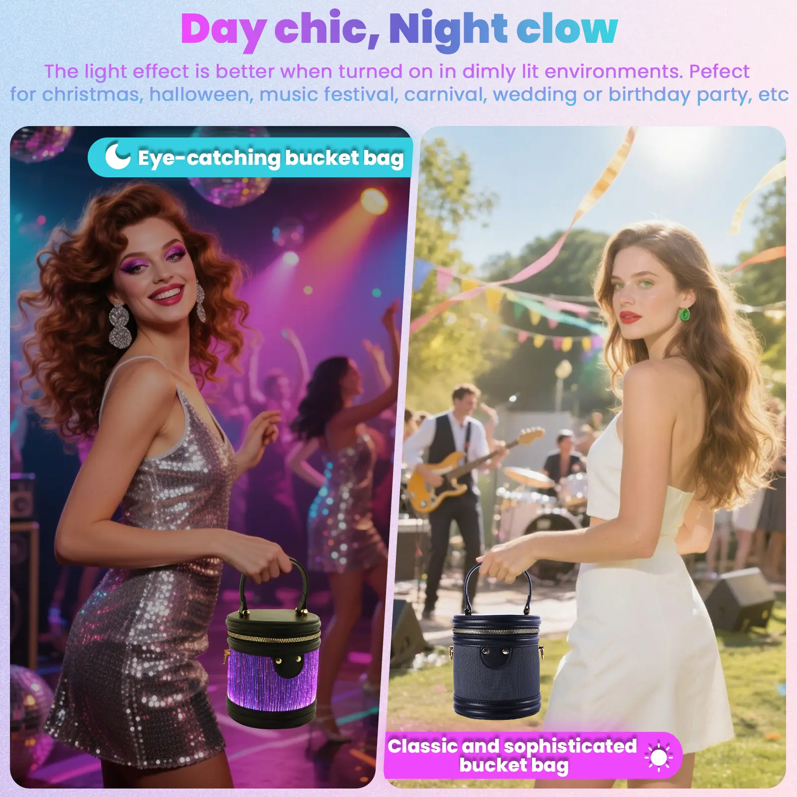 This LED bucket bag is your go-to accessory for:
