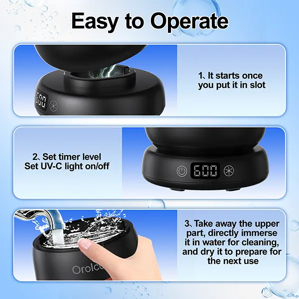 【Portable and Easy to Operate, One-Click to Start Cleaning】: The body is small and exquisite, easy to store and carry; with one-click operation design, after adding water and putting in items, select the corresponding timing to start cleaning, and the UV-C lamps work synchronously for more thorough and worry-free cleaning.