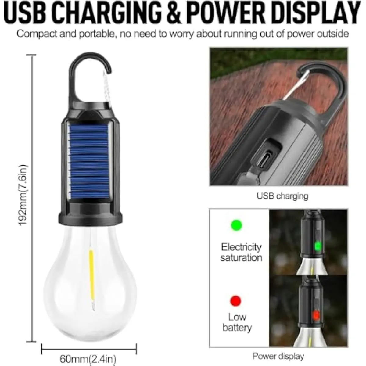 USB and Solar Rechargeable: This LED camping lantern has a built-in rechargeable battery, can USB and Solar Rechargeable.