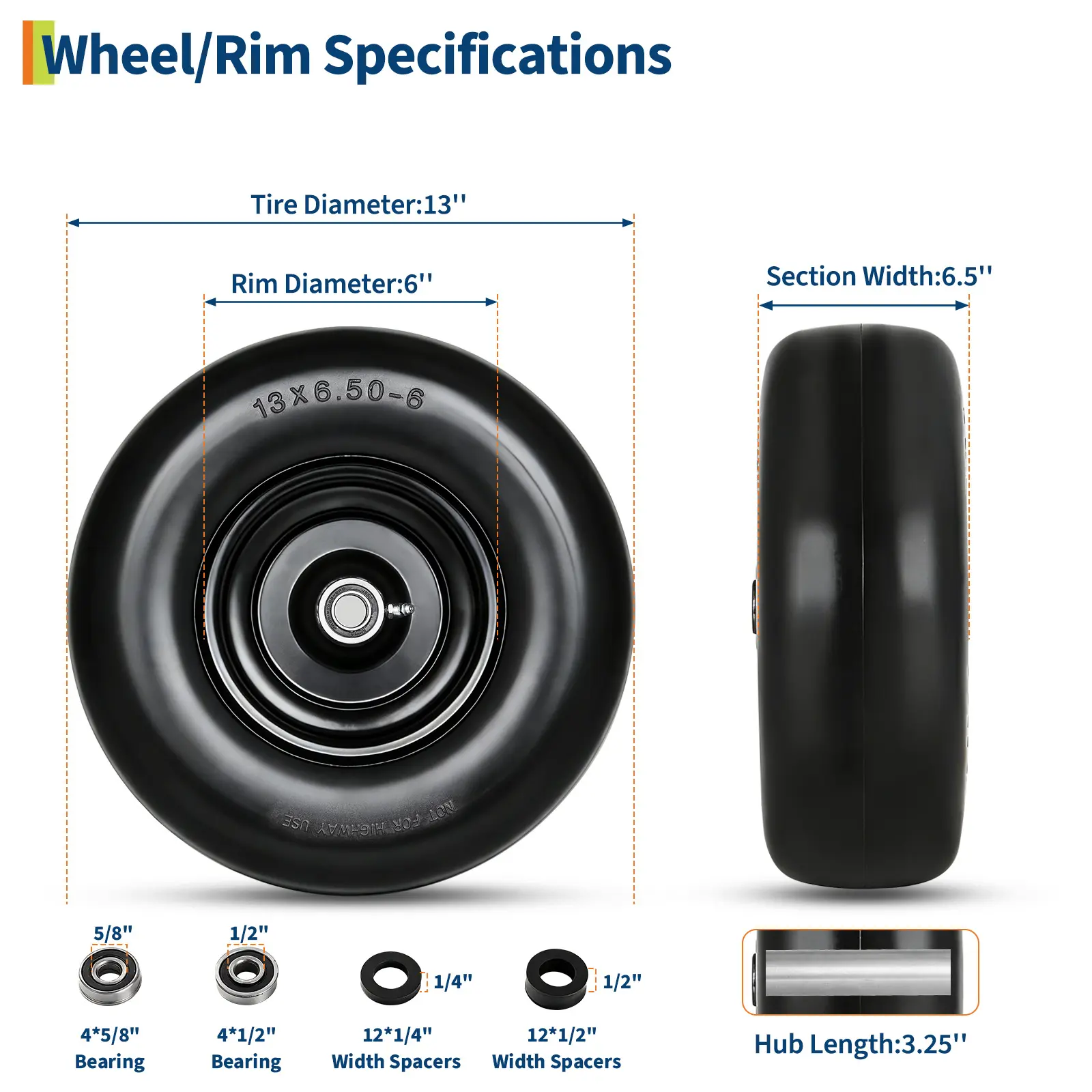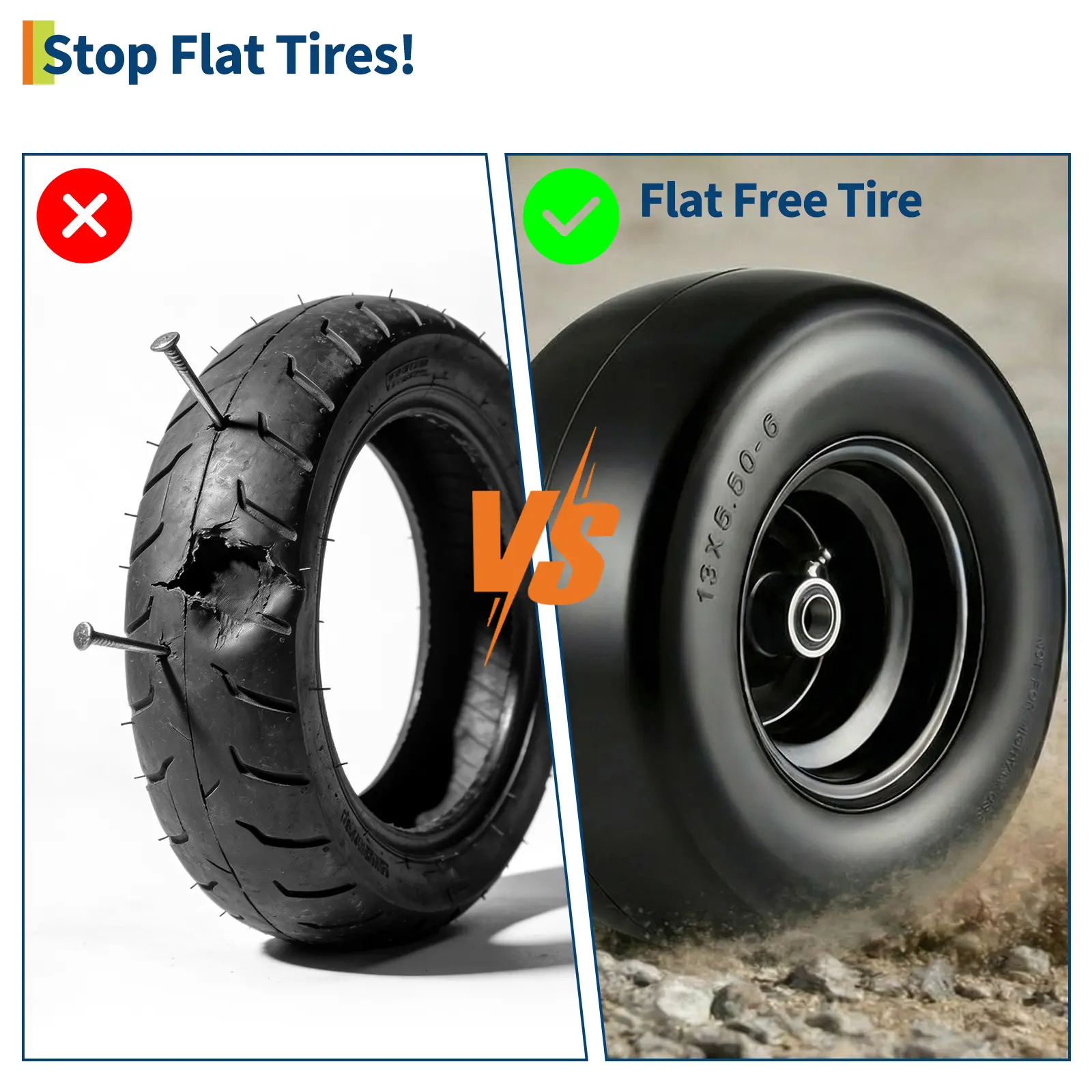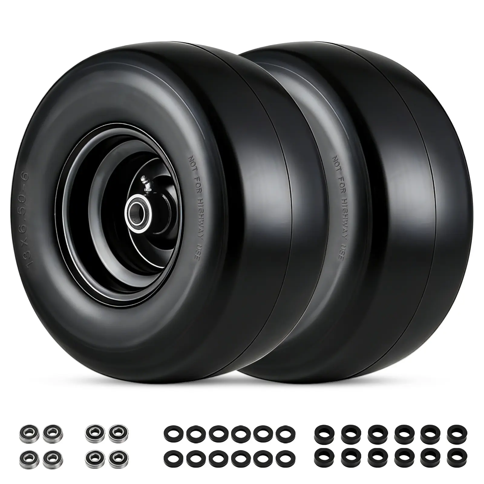 ·Global Fit, Hassle-Free Performance: Our flat free lawn mower tires and wheels are designed for easy replacement on a wide range of push mowers, garden carts, hand trucks, and utility carts. Compatible sizes include 11x4.00-5, 11x6.00-5, 13x5.00-6, and 13x6.50-6, ensuring a perfect fit for most yard equipment.