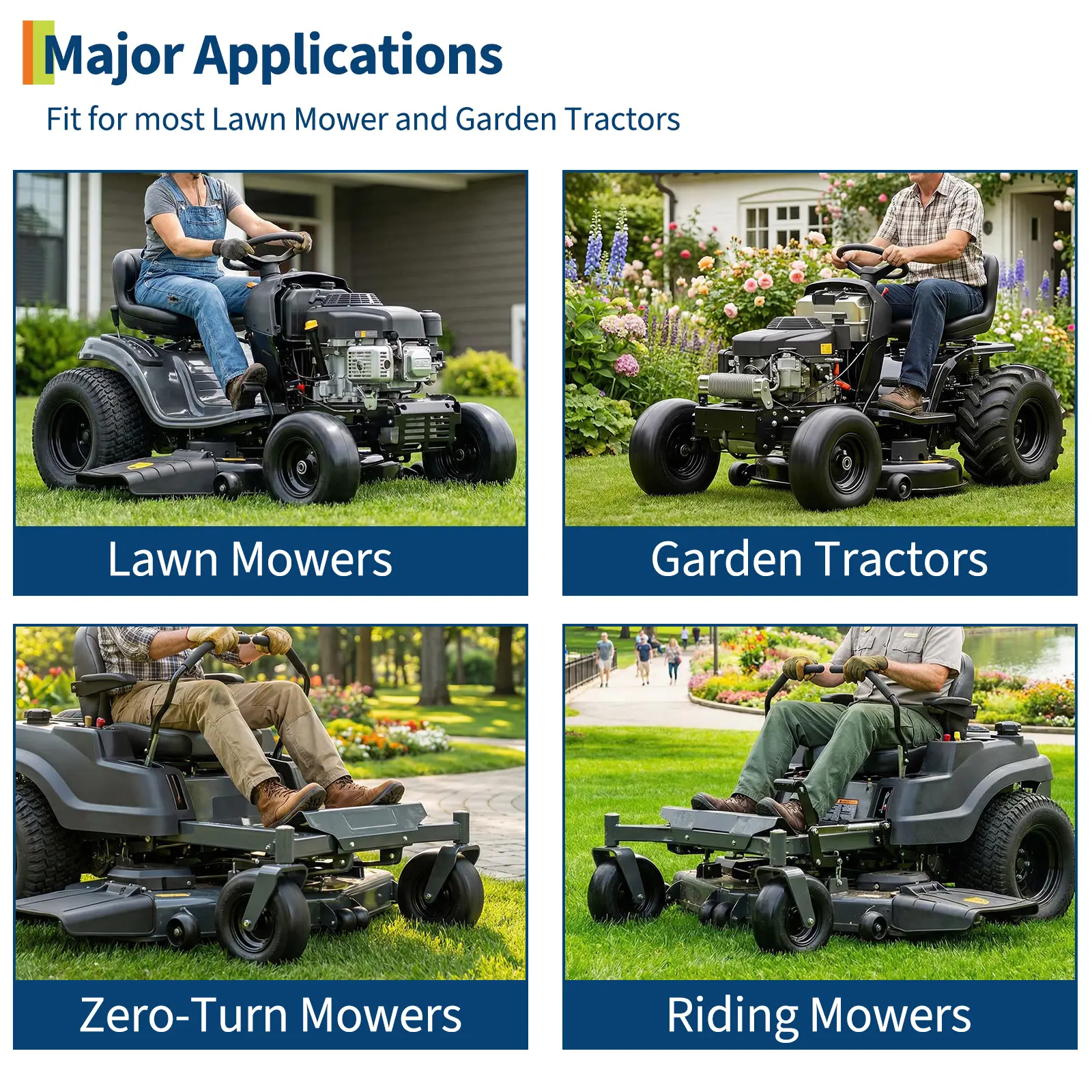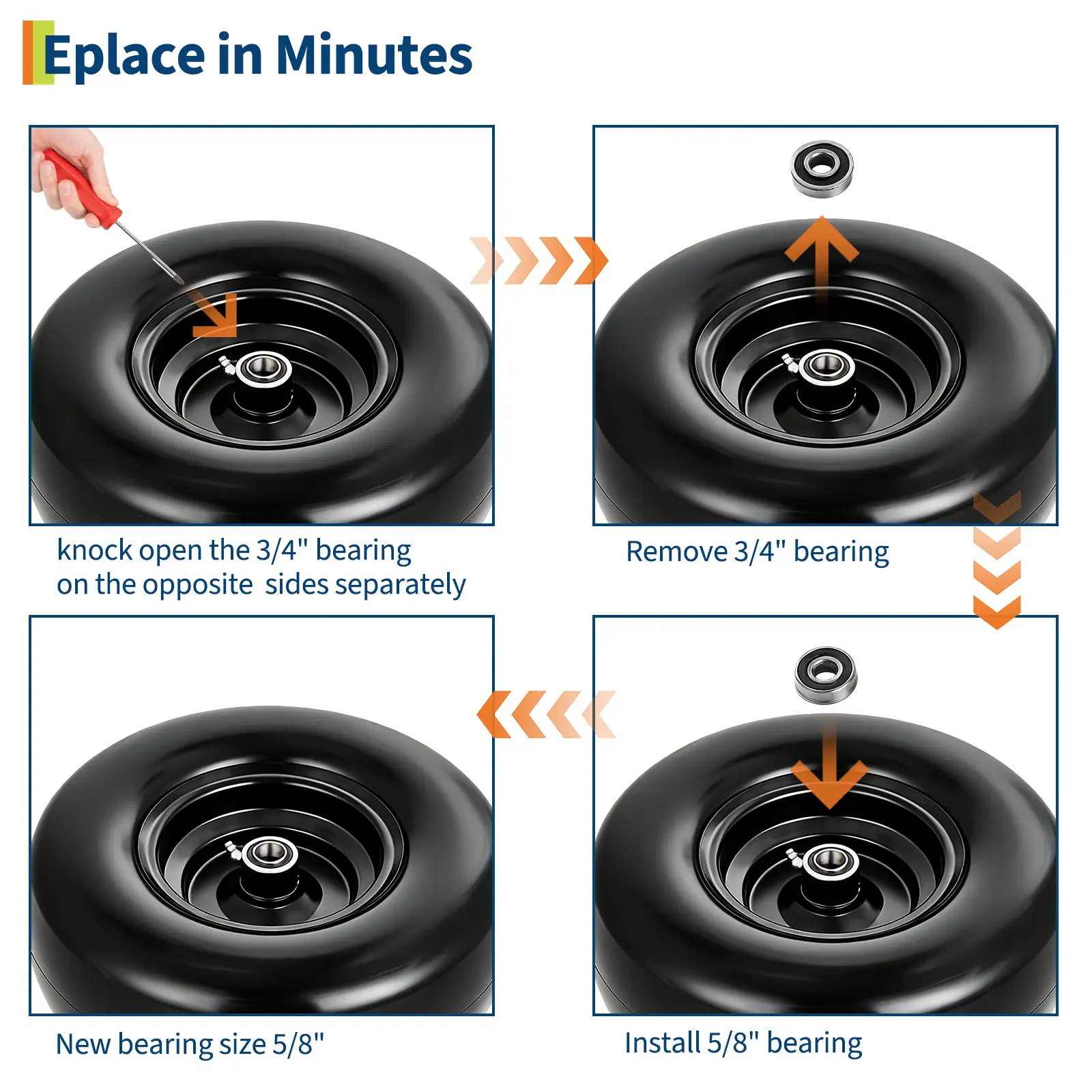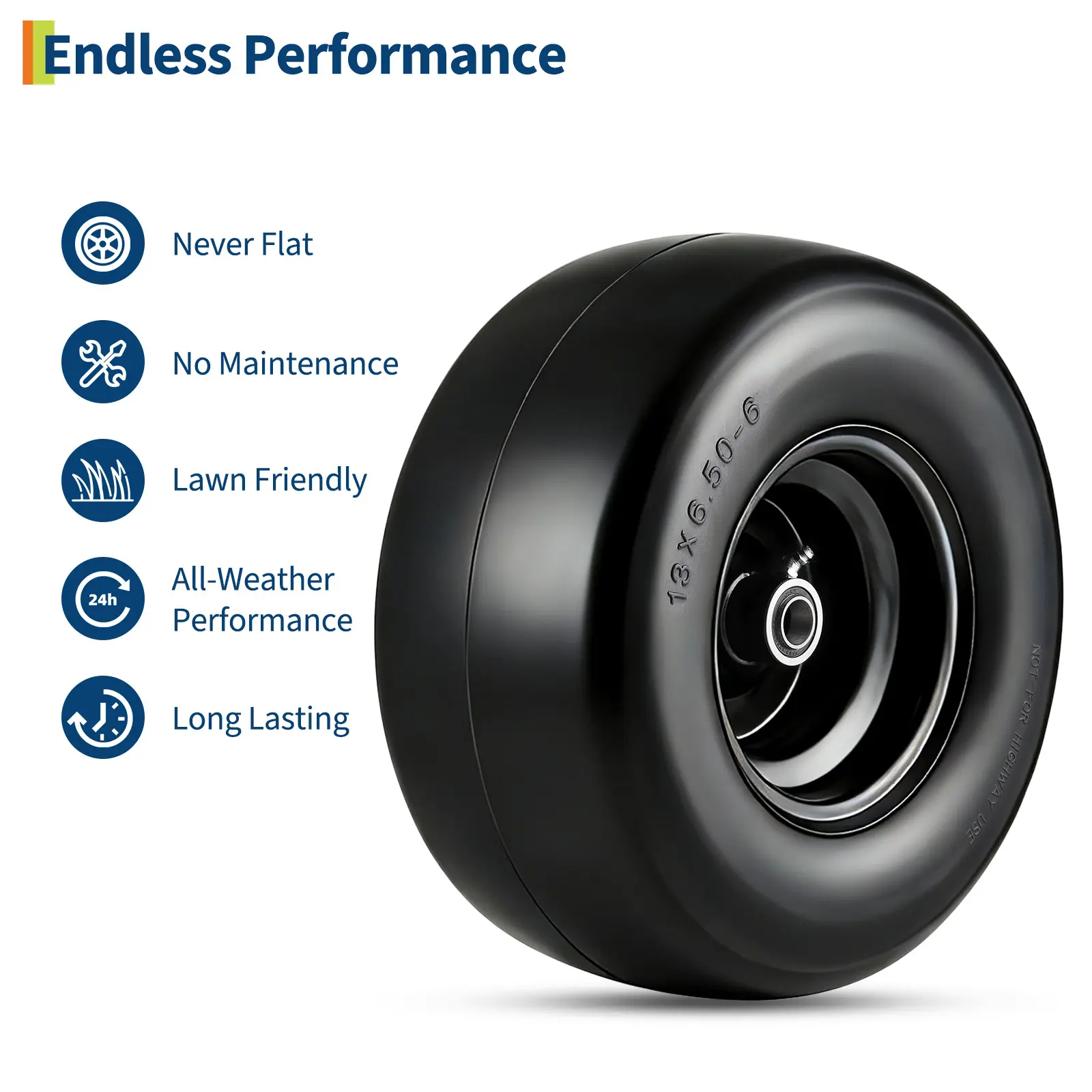 ·Global Fit, Hassle-Free Performance: Our flat free lawn mower tires and wheels are designed for easy replacement on a wide range of push mowers, garden carts, hand trucks, and utility carts. Compatible sizes include 11x4.00-5, 11x6.00-5, 13x5.00-6, and 13x6.50-6, ensuring a perfect fit for most yard equipment.
