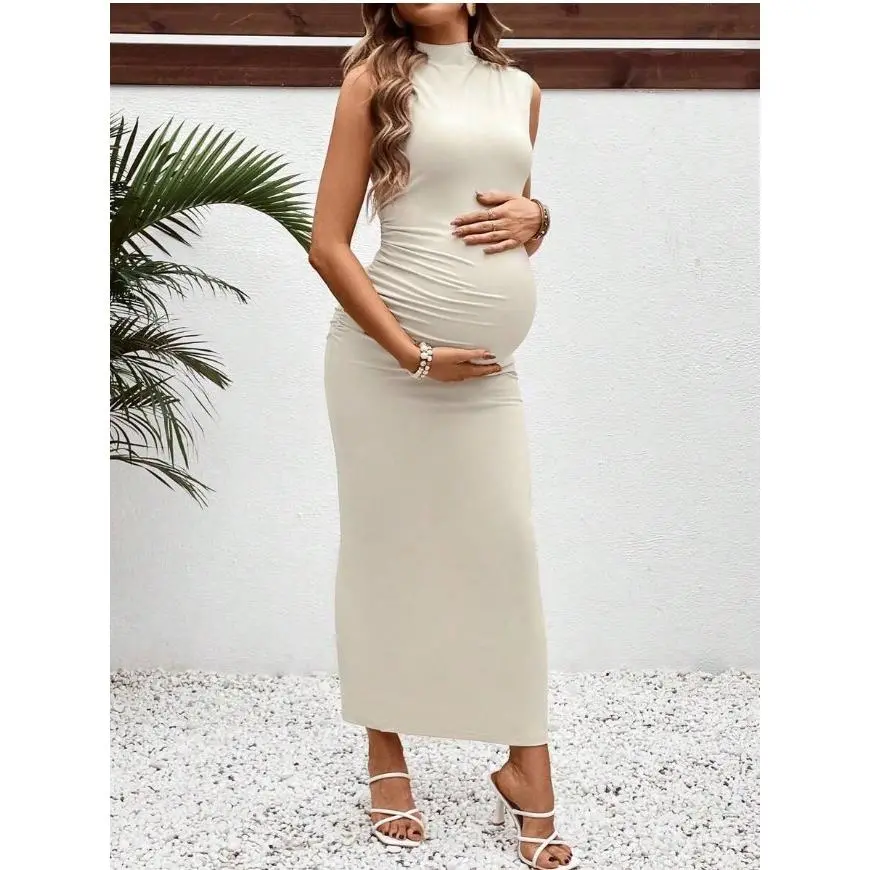 ELLIOTTWII Maternity Solid Color Plunging Neckline Backless Sleeveless Fashionable Dress Summer Outfits Maternity White Dress Bump Friendly Dress Pregnancy Dress For Photoshoot Wedding Guest Dress Elegant Dresses