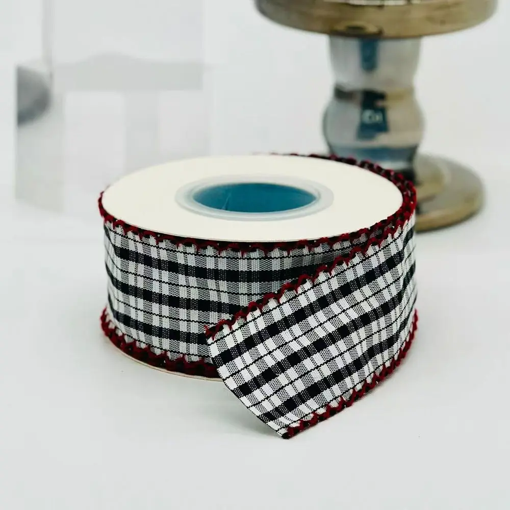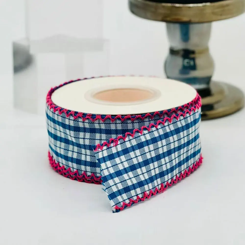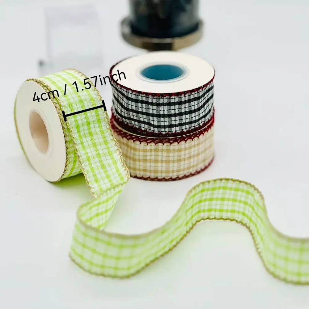 Multicolor Contrast Plaid Lace Ribbon, 5 Yards Floral Packaging, Handmade Hair Clips, Gift Wrapping Universal Fabric, 4.57 Meters