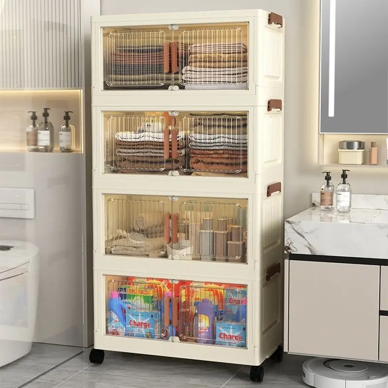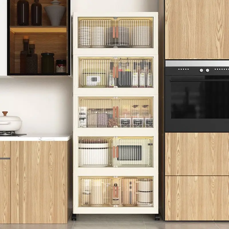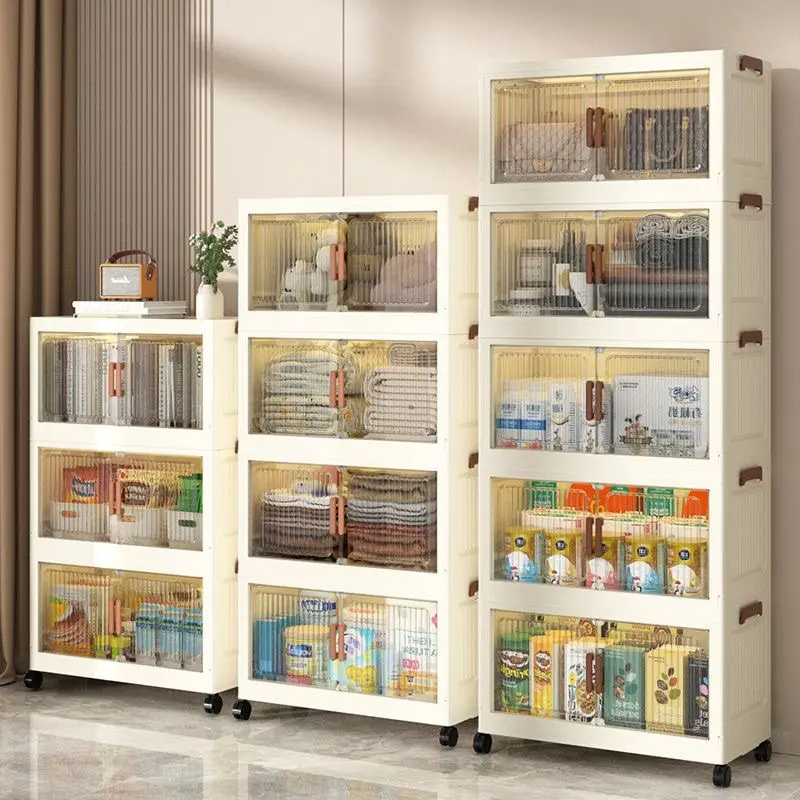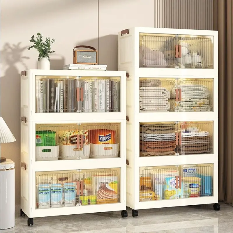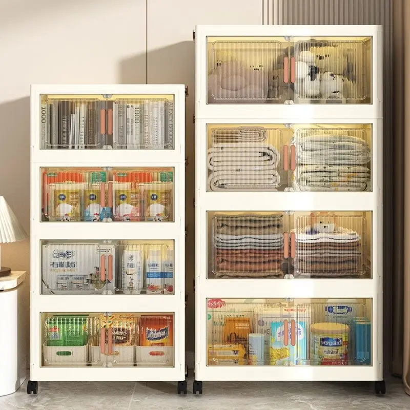 Foldable Storage Cabinet for Home, Living Room Snack Organizer, Kitchen Cupboard, Classic Style, Chengfeng 4512 Transparent Model
