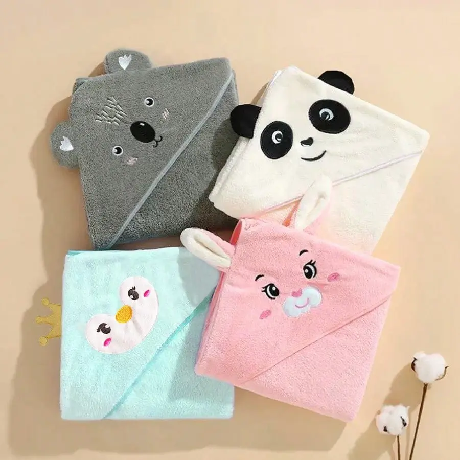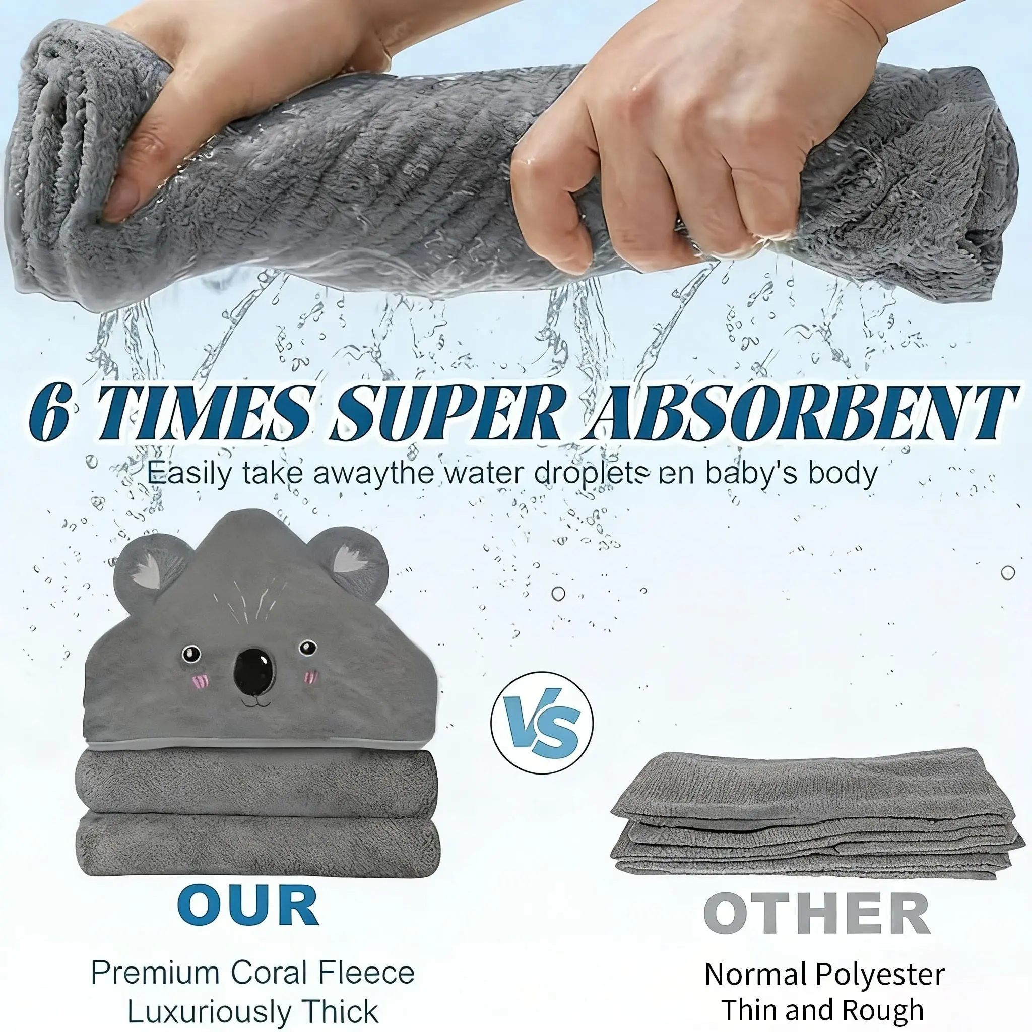 Baby Hooded Bathrobe, Cartoon Animal Design, Soft Coral Fleece, Skin-Friendly, Infant Toddler Towel Wrap, 1pc