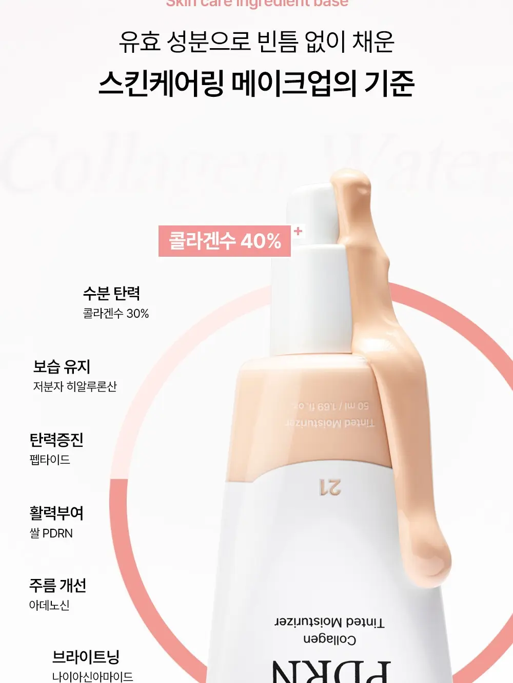 | Ingredients | WATER (AQUA),DIPHENYLSILOXY PHENYL TRIMETHICONE,TITANIUM DIOXIDE (CI 77891),DIMETHICONE,ISODODECANE,CAPRYLYL METHICONE,BUTYLENE GLYCOL,GLYCERIN,METHYL TRIMETHICONE,PROPYLENE GLYCOL DIBENZOATE,LAURYL PEG-10 TRIS(TRIMETHYLSILOXY)SILYLETHYL DIMETHICONE,DIISOSTEARYL MALATE,ACRYLATES/POLYTRIMETHYLSILOXYMETHACRYLATE COPOLYMER,IRON OXIDES (CI 77492),NIACINAMIDE,CETYL PEG/PPG-10/1 DIMETHICONE,DISTEARDIMONIUM HECTORITE,MAGNESIUM SULFATE,SORBITAN SESQUIOLEATE,1,2-HEXANEDIOL,MICA,IRON OXIDES (CI 77491),IRON OXIDES (CI 77499),SILICA,DIMETHICONE/VINYL DIMETHICONE CROSSPOLYMER,CAPRYLYL GLYCOL,TRIETHOXYCAPRYLYLSILANE,ALUMINUM HYDROXIDE,ETHYLHEXYLGLYCERIN,HYDROLYZED COLLAGEN,ADENOSINE,LAUROYL LYSINE,HYDROLYZED HYALURONIC ACID,SACCHAROMYCES/RICE FERMENT FILTRATE,PENTYLENE GLYCOL,TOCOPHEROL,PENTAERYTHRITYL TETRA-DI-T-BUTYL HYDROXYHYDROCINNAMATE,COLLAGEN EXTRACT,SODIUM PHYTATE,COPPER TRIPEPTIDE-1,SODIUM DNA |