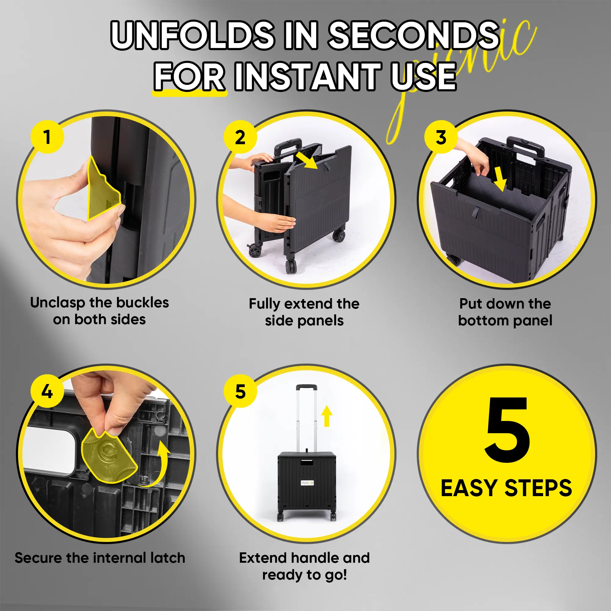 🔧 Quick Setup & Multi-Purpose Use - 3-Second Unfolding: No tools required. - Versatile Use: Perfect for shopping, travel, moving, office, or teaching needs.