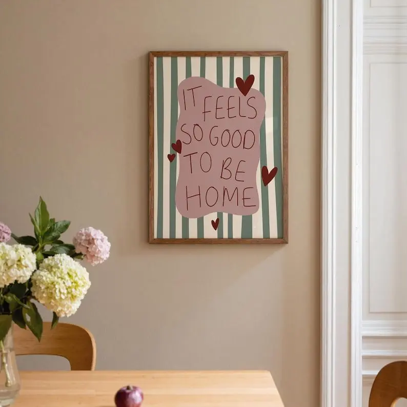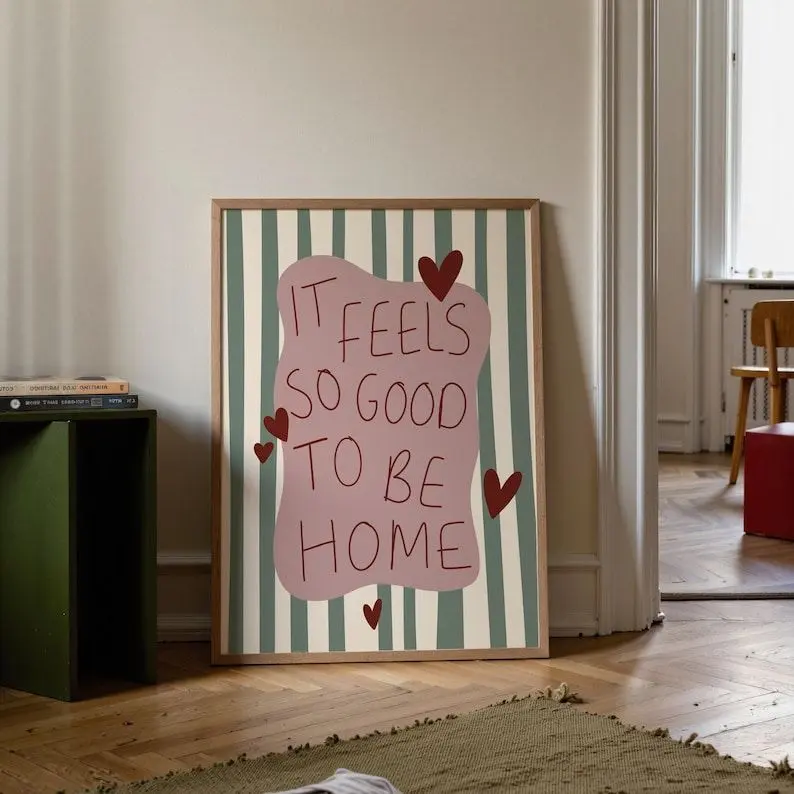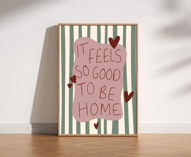 It Feels So Good To Be Home Print Cosy Retro Wall Art, Mid Century Striped Hallway Entryway Art, Living Room Art