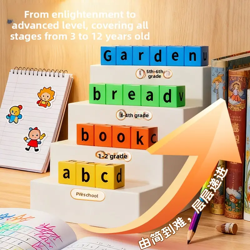 Children's English spelling contests, early education alphabet blocks, learning aids, English board games and toys