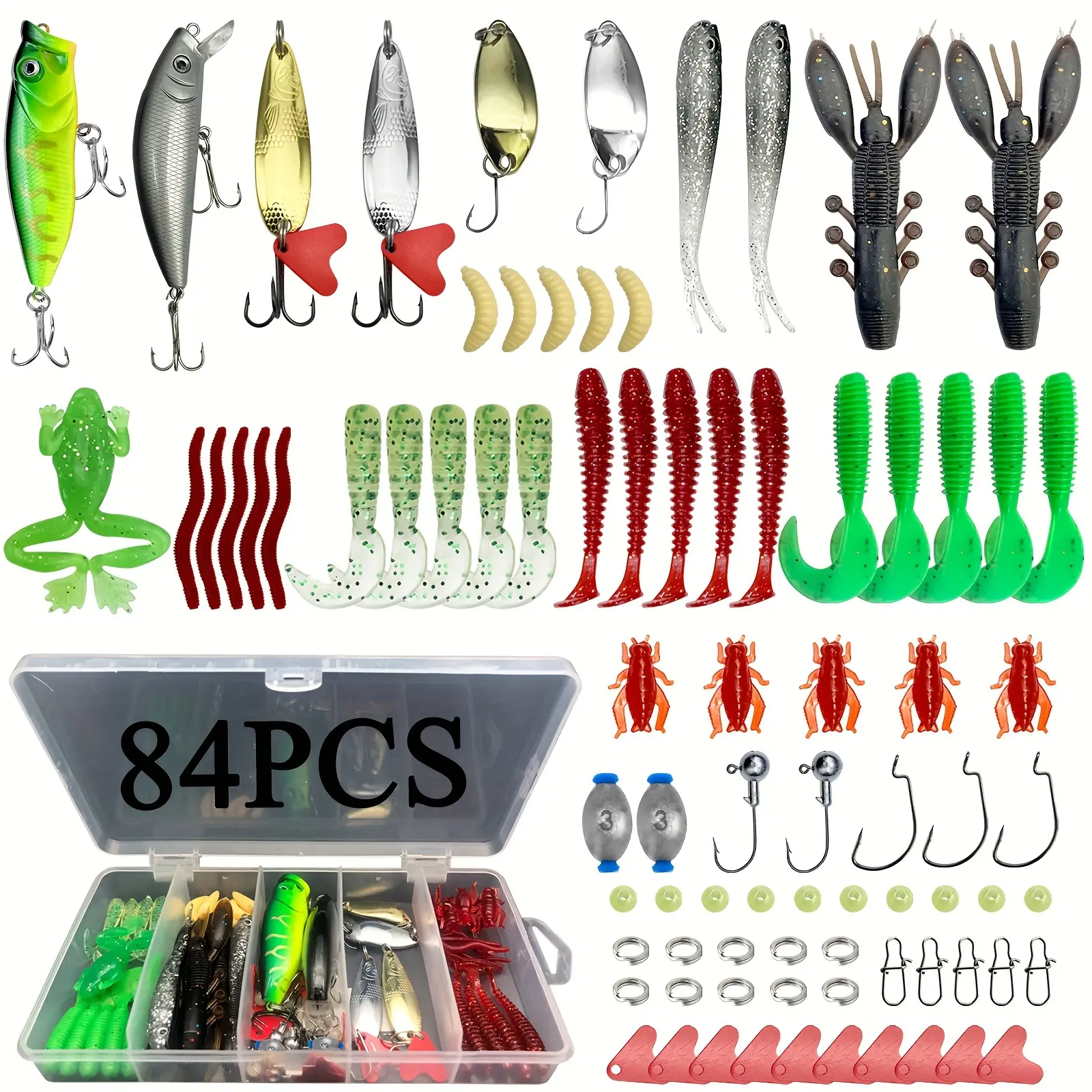 Randomly Shaped Lead Weights, 30/79/84/93/106/283pcs of Fishing Lures for Topwater Fishing, Tackle Kit for Bass, Trout, And Salmon, Including a Lure Kit Box with Minnow Poppers, Spoon Lures, Soft Plastic Worms, Bait Rigs, And Jig Heads