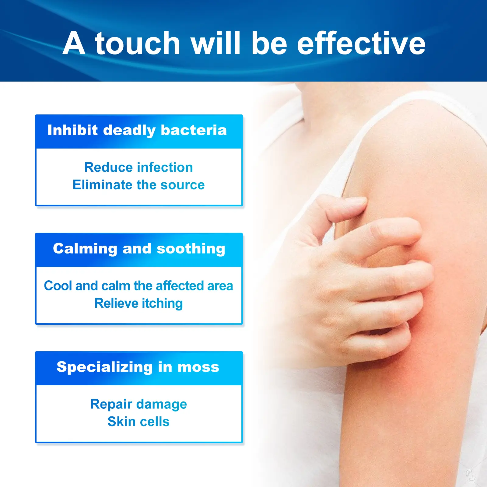 Our skin rash cream contains matrine and Phellodendron cortex. It suppresses deadly bacteria, reduces infections and eliminates the source; It has sedative and soothing effect, cool and calm the affected area, relieve itching; Repair damaged skin cells. Its use method is very simple: 1. Wash the unsuitable skin; 2. Apply appropriate amount of the product to the discomfort area; 3. Massage until absorbed. Skin rash cream relieves itching and pain, reduces skin infections, and is cool and comfortable after application.