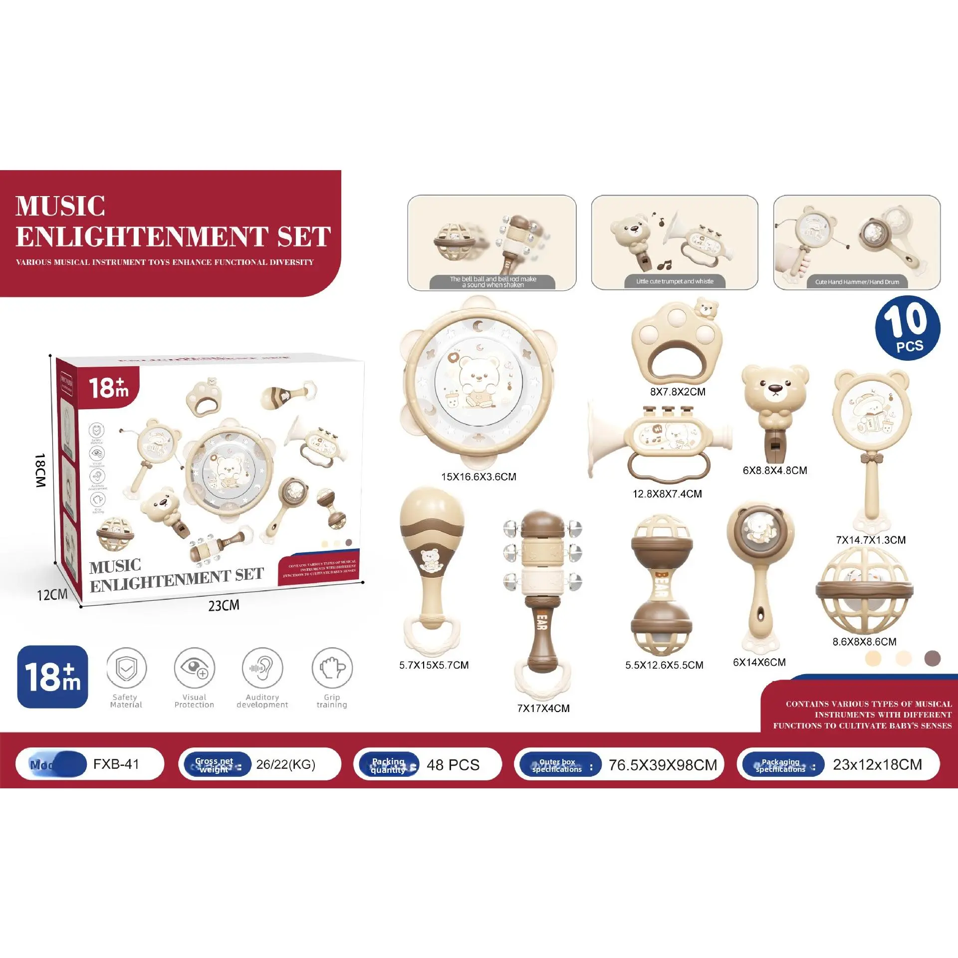 Children's Toys Music Drum Percussion Instrument Baby Tambourine Early Childhood Education Enlightenment Infant 0-3 Years Old 1 Handbell
