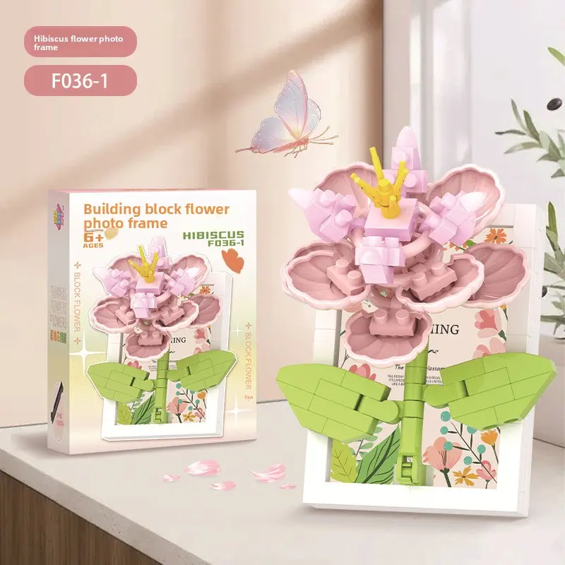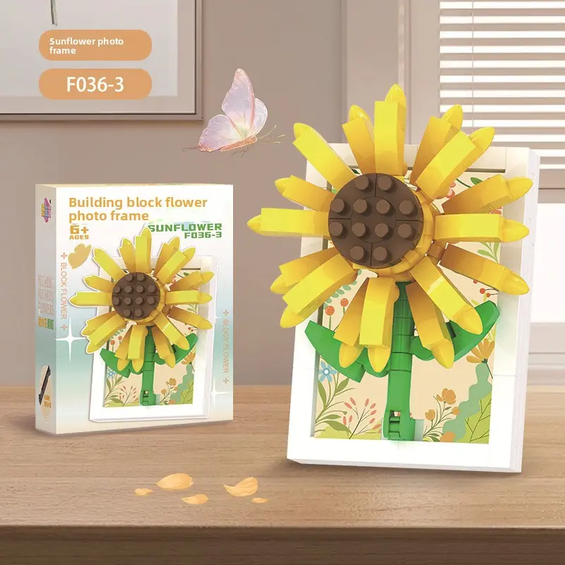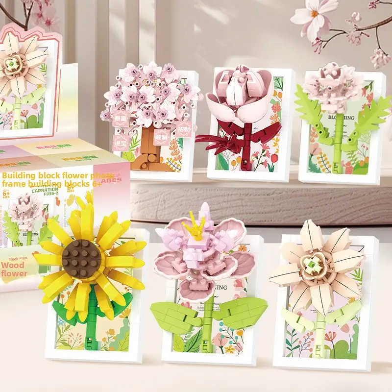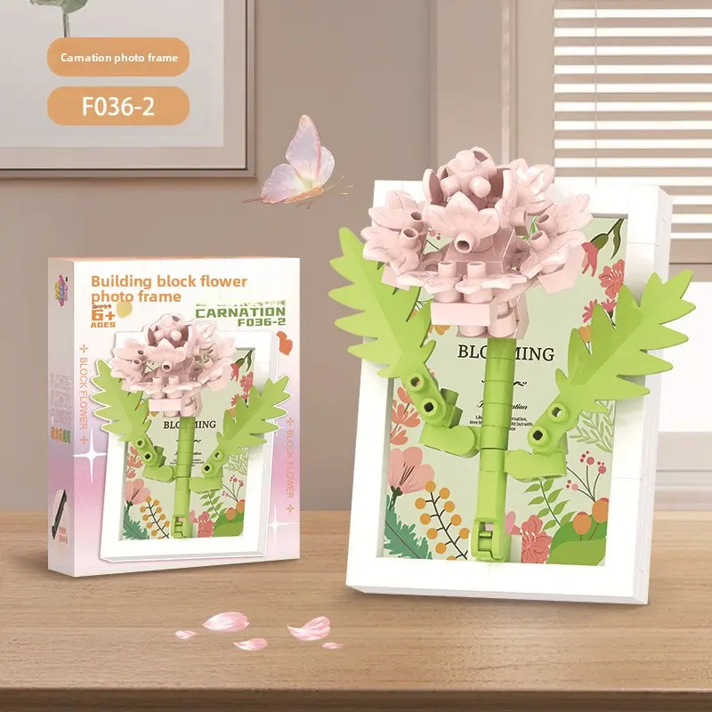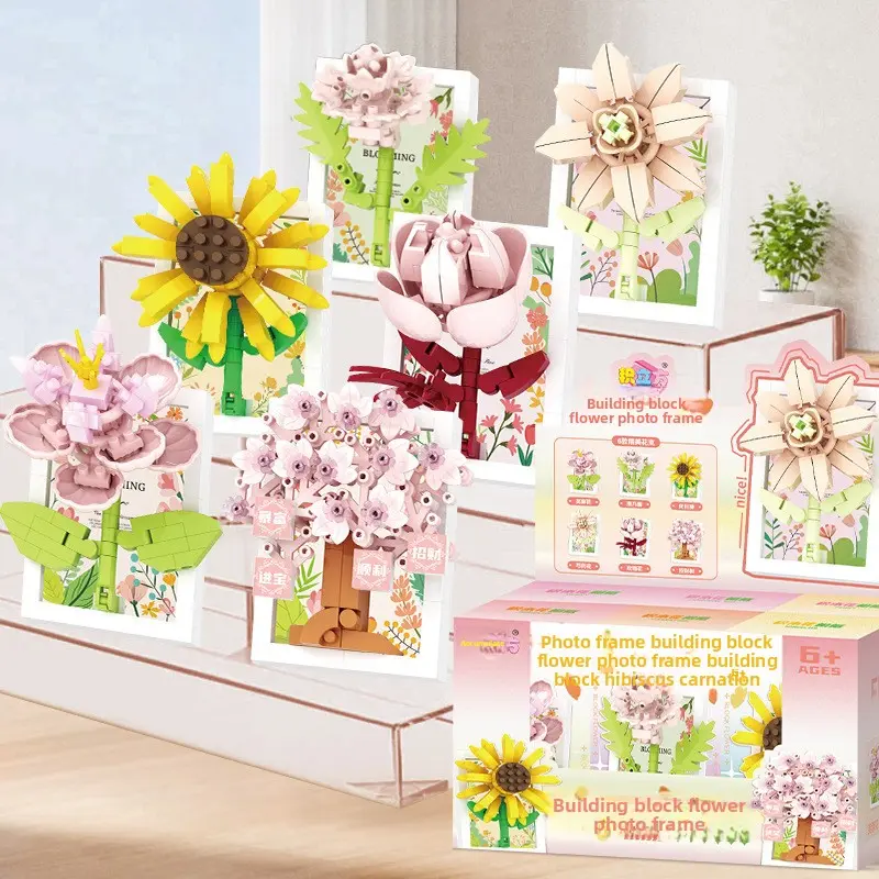 Picture frame, building blocks, bouquet, preserved flowers, carnations, sunflowers, DIY girls' holiday
