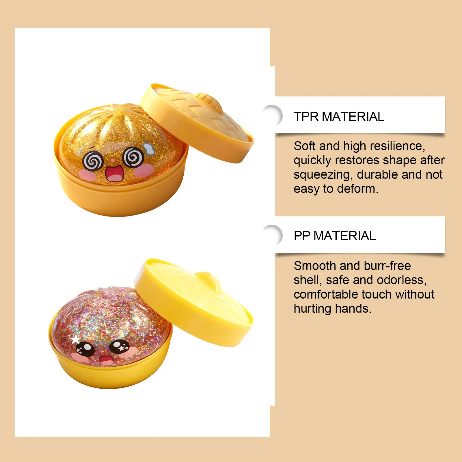 ·Shape & Design:Shaped like a real bun, this toy is filled with dazzling glitter.🌟