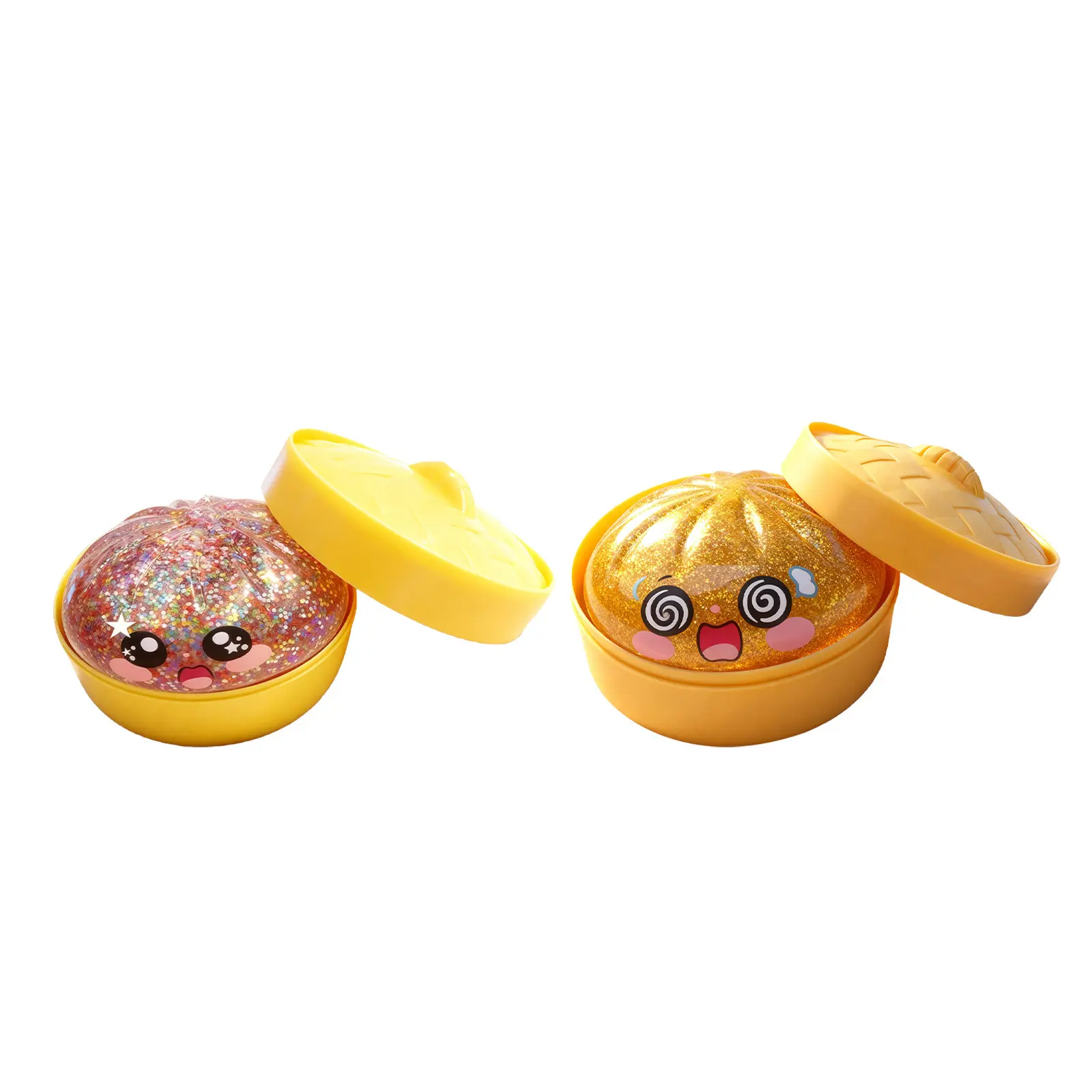 Creative glitter bun squashable toy, shaped like a real bun, filled with dazzling glitter. Soft and bouncy, it won't deform even after repeated squashing, making it an ideal stress-relieving toy and creative gift.