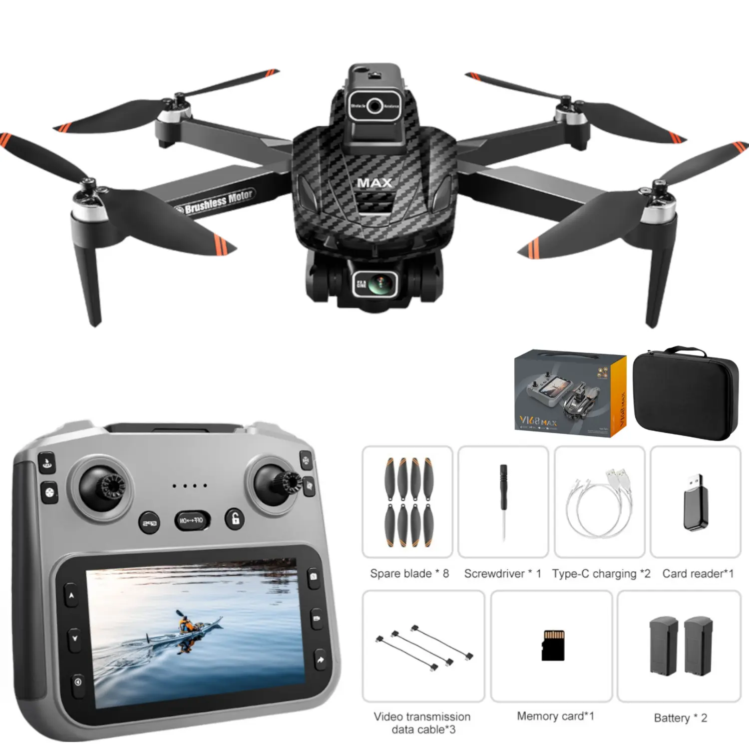 V168 MAX GPS Drone, 4K HD Dual Camera, 360° Smart Obstacle Avoidance, FPV Flight, Optical Flow Positioning, Quadcopter, Suitable for Adults and Beginners, HD Large Screen Remote Controller, 6-Axis Gyroscope, 2 Batteries + SD Card + Carrying Case Set