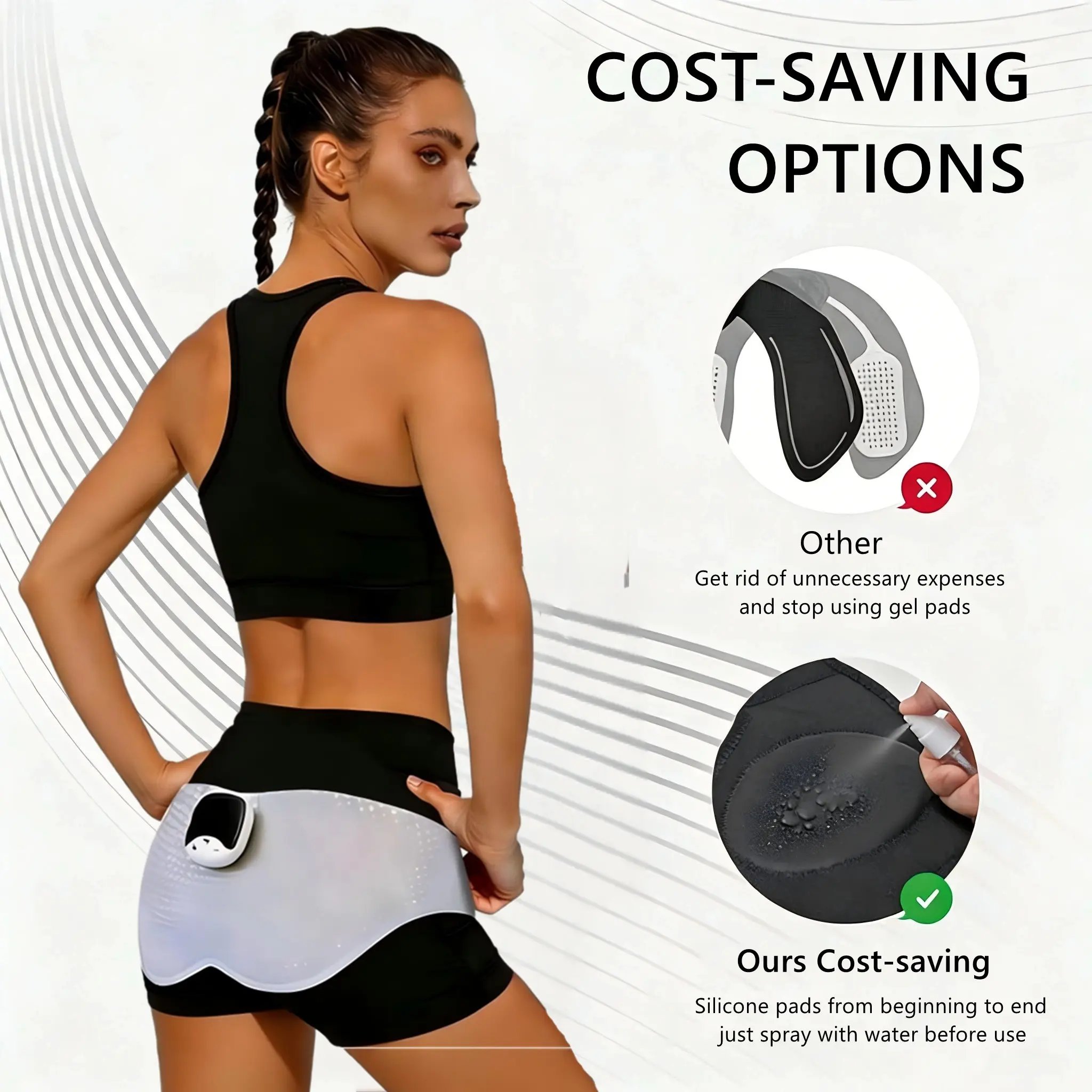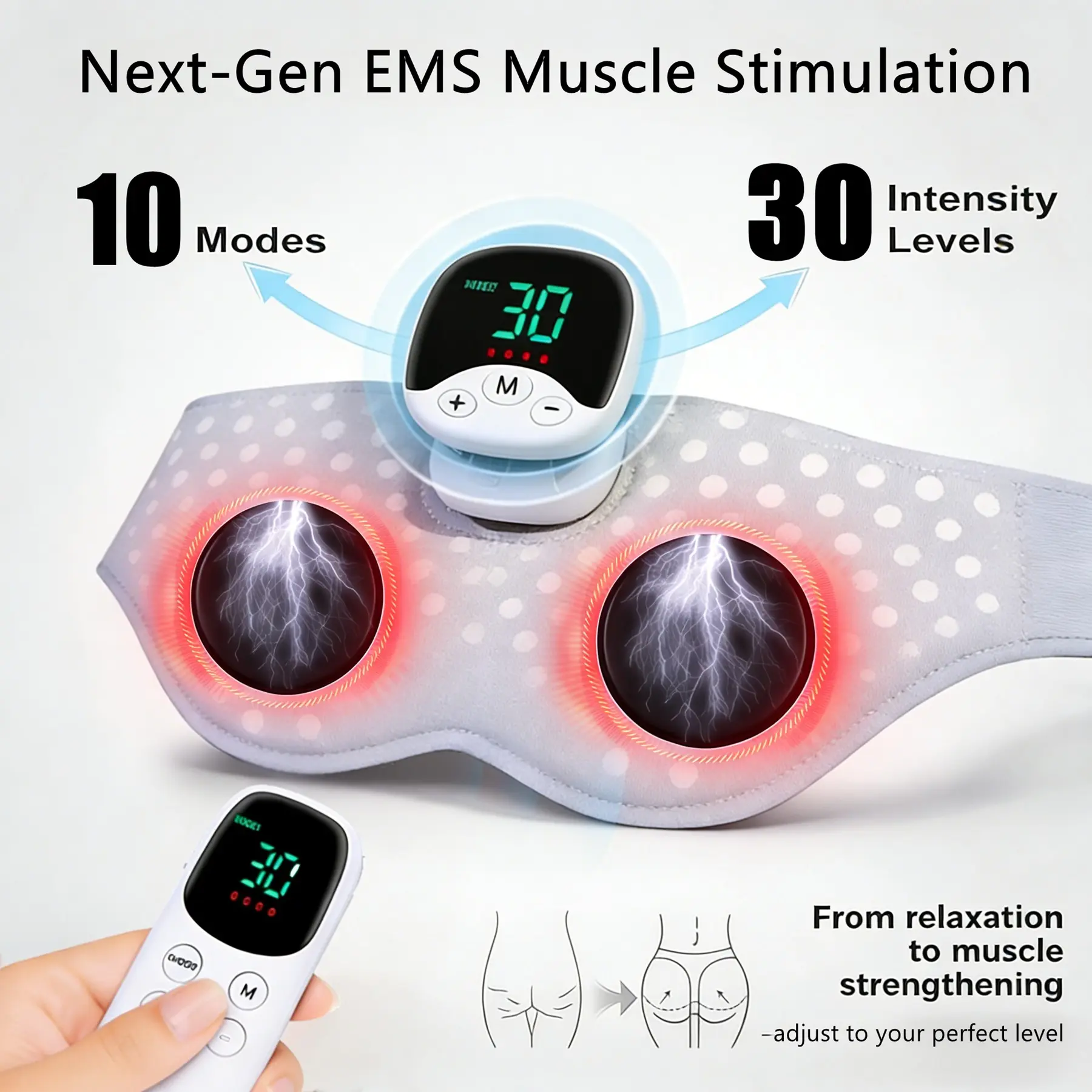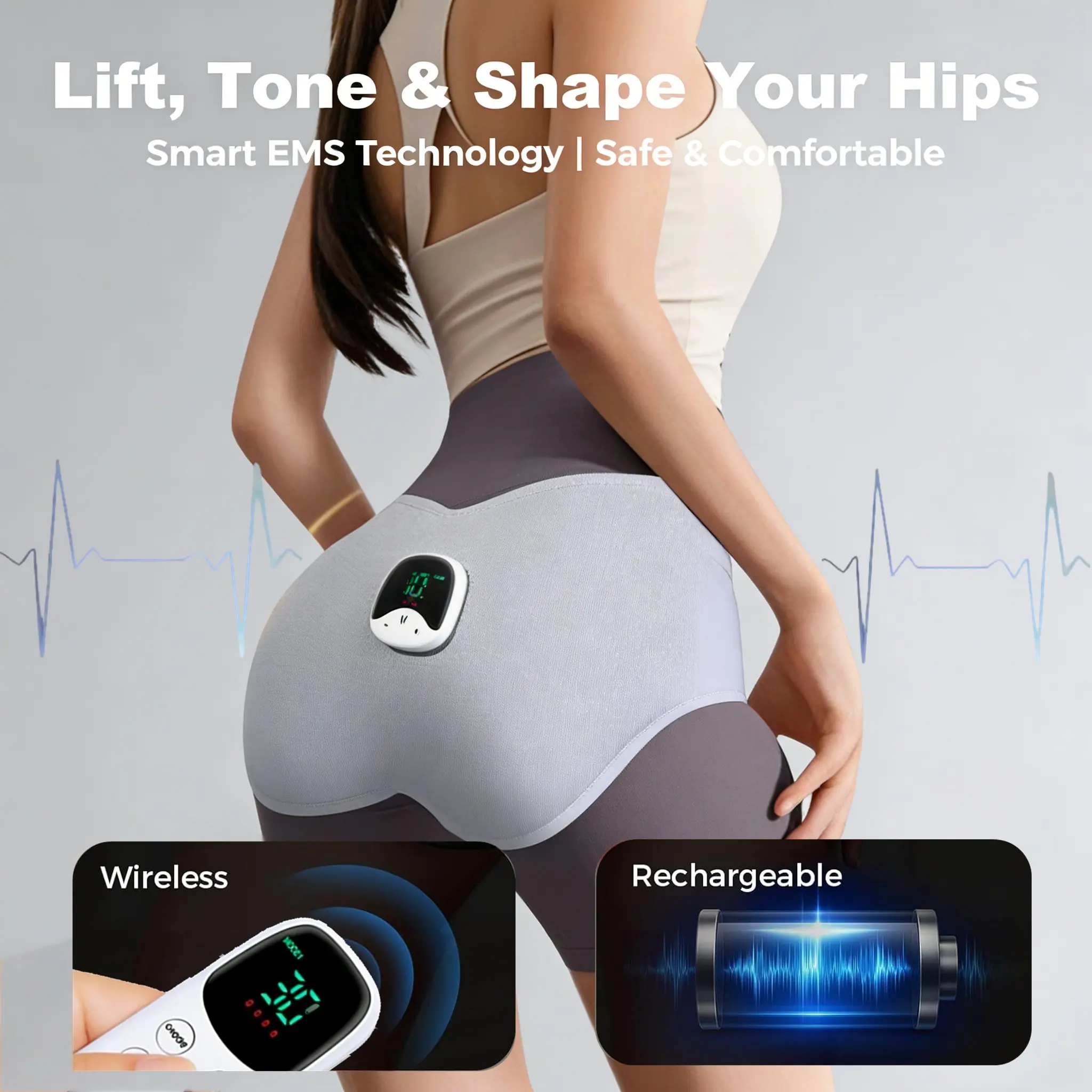 【EMS Functionality】: Features EMS (Electro Muscular Stimulation) technology for targeted glute toning and hip lifting.