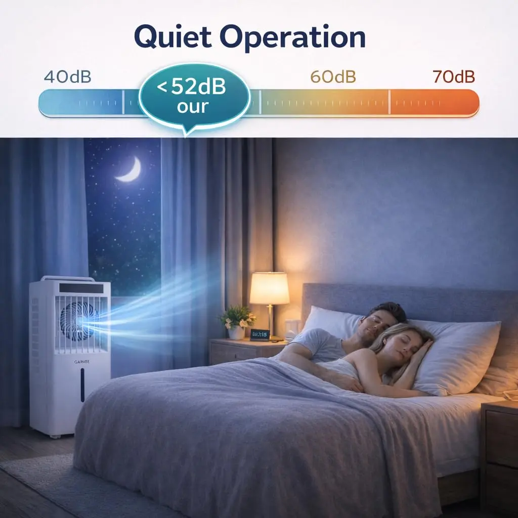 ·Quiet Operation & Energy Saving: Operates at just 45dB with a pure copper motor and consumes only 65W, ensuring peaceful sleep or focused work while saving energy compared to traditional air conditioners.