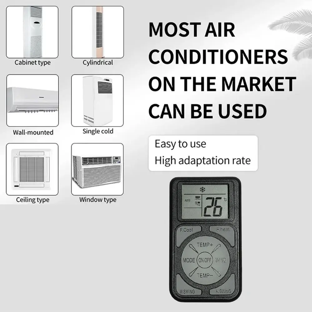 Universal AC Remote Control:Designed as a universal air conditioner remote, it is compatible with most major AC brands and supports essential functions such as temperature adjustment, fan speed, and mode control for convenient daily use.