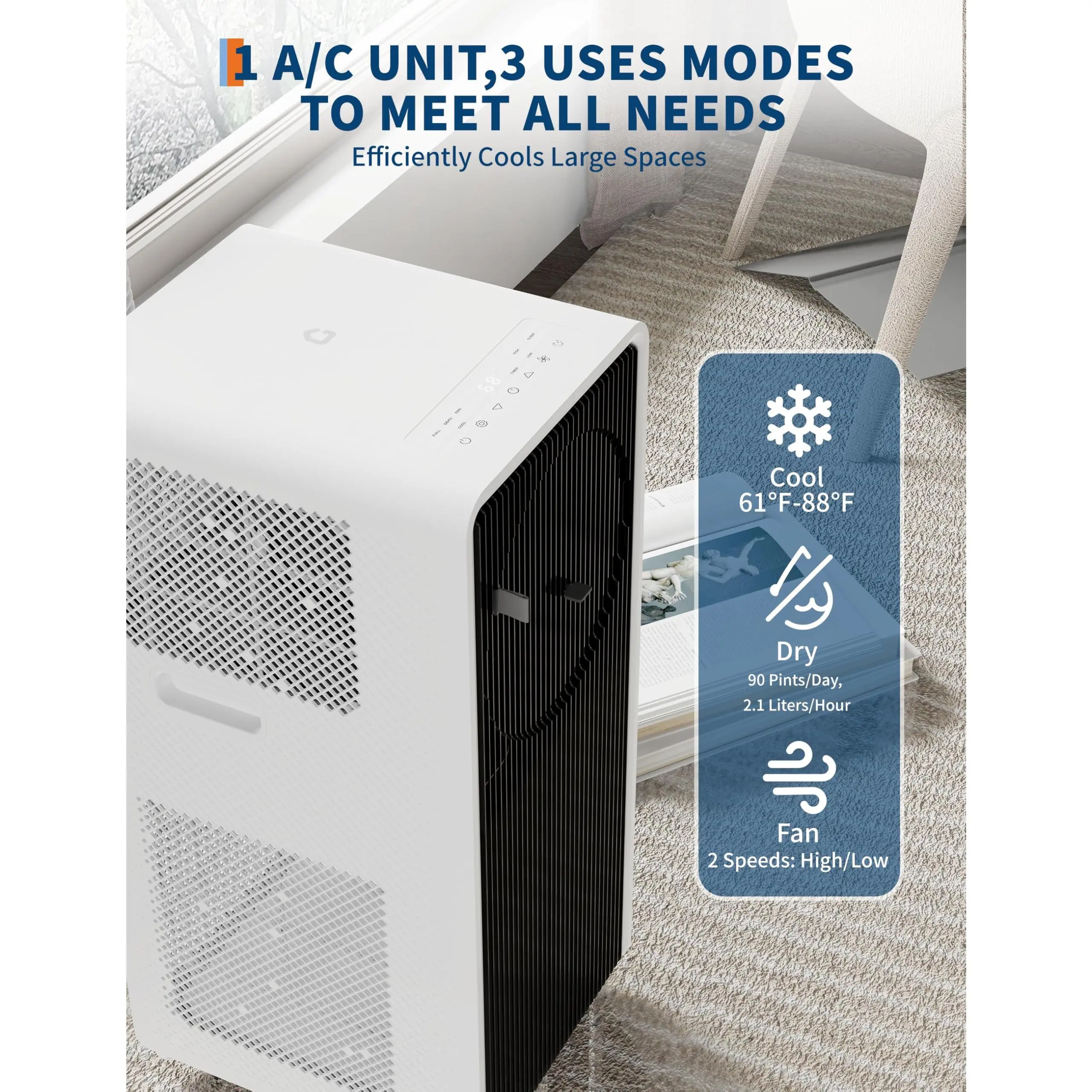 Beat the heat faster than ice melts with our ENERGY STAR certified portable air conditioner! This 3-in-1 AC unit combines Arctic-grade cooling (61°F-90°F range), 50-pint/day dehumidification, and ac fan modes - perfect as a bedroom air conditioner, RV air conditioner, or garage AC unit.
