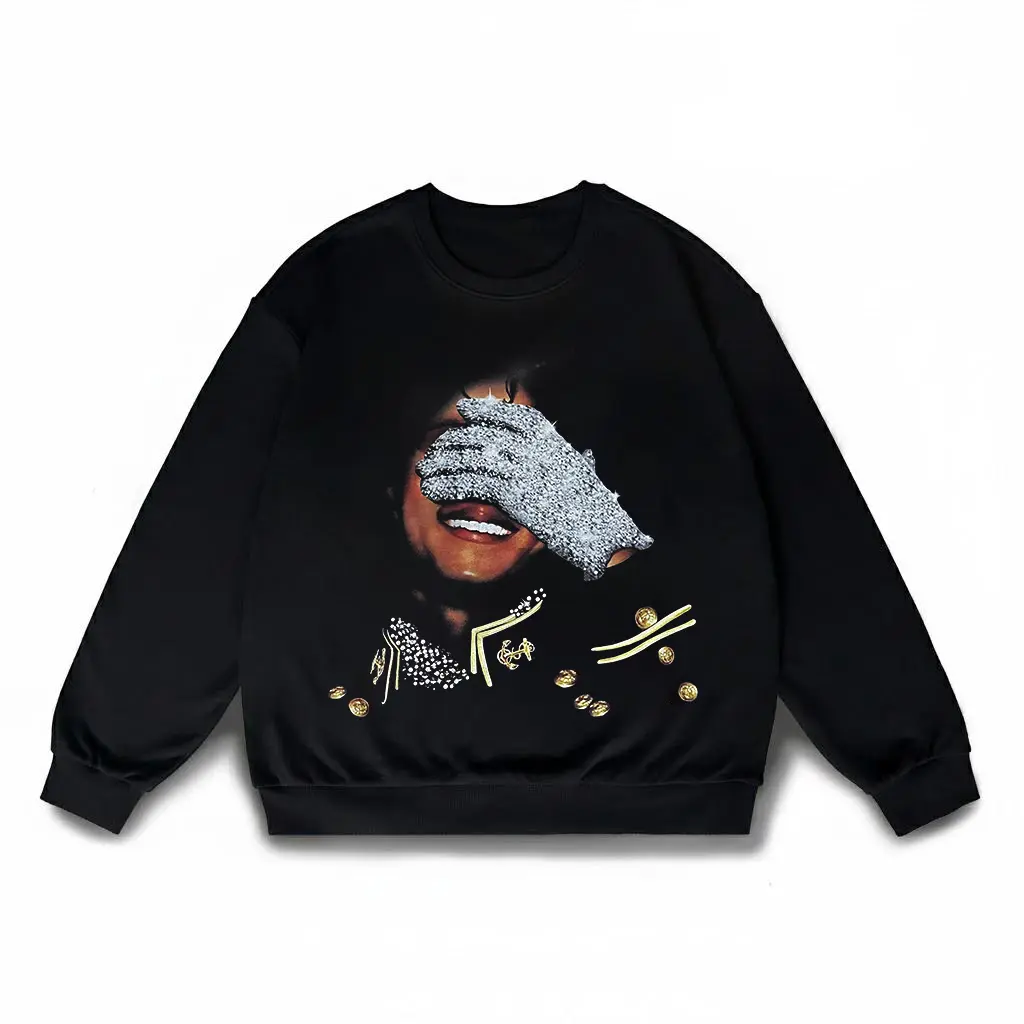 Diamond Glove T-Shirt, MJ Inspired Rhinestone Graphic Crewneck, Vintage Pop King Style Pullover, Streetwear Sparkle Fashion Top, Unisex Retro Outfit