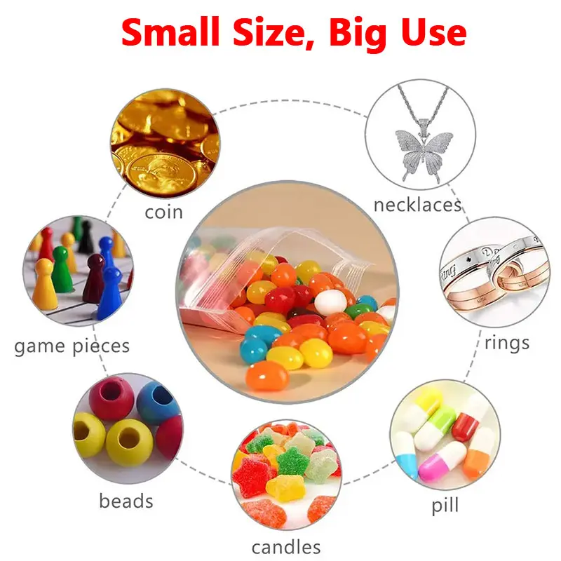 5. 100 PCS Small Plastic Ziplock Bags Resealable Transparent Jewelry Shoe Bag Vacuum Storage Bag Food Storage Bag Poly Clear Bags