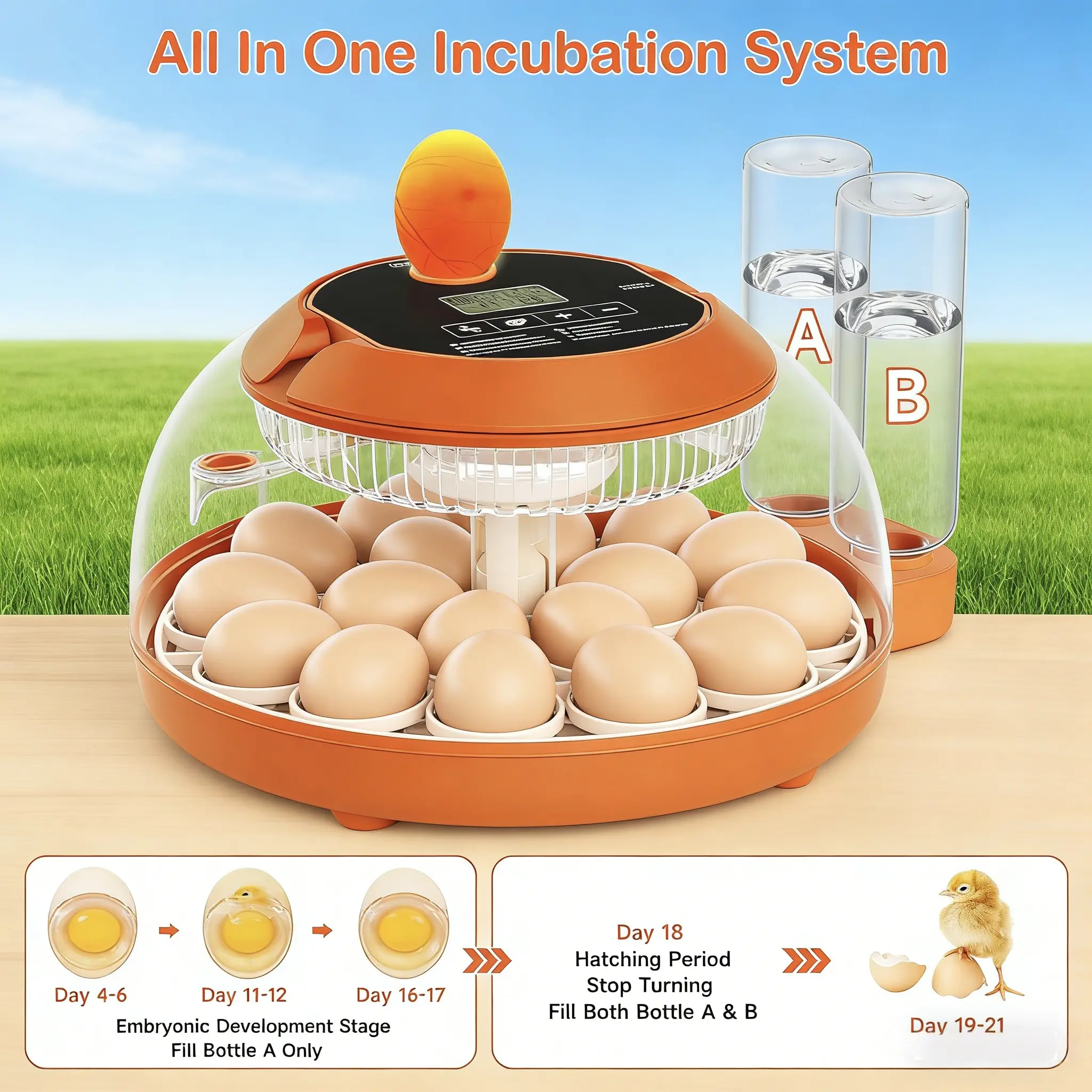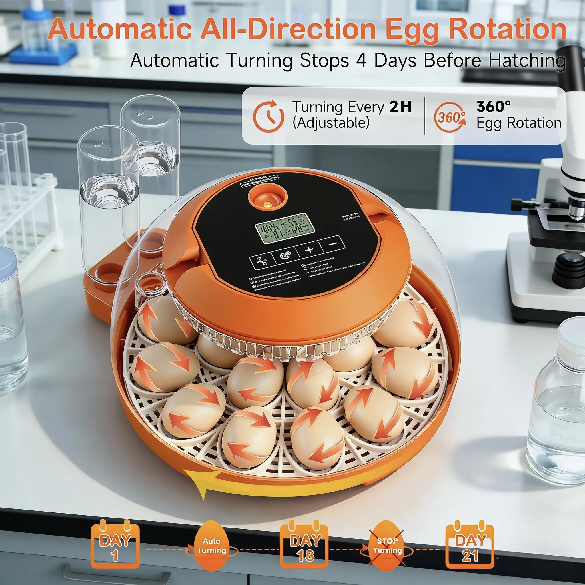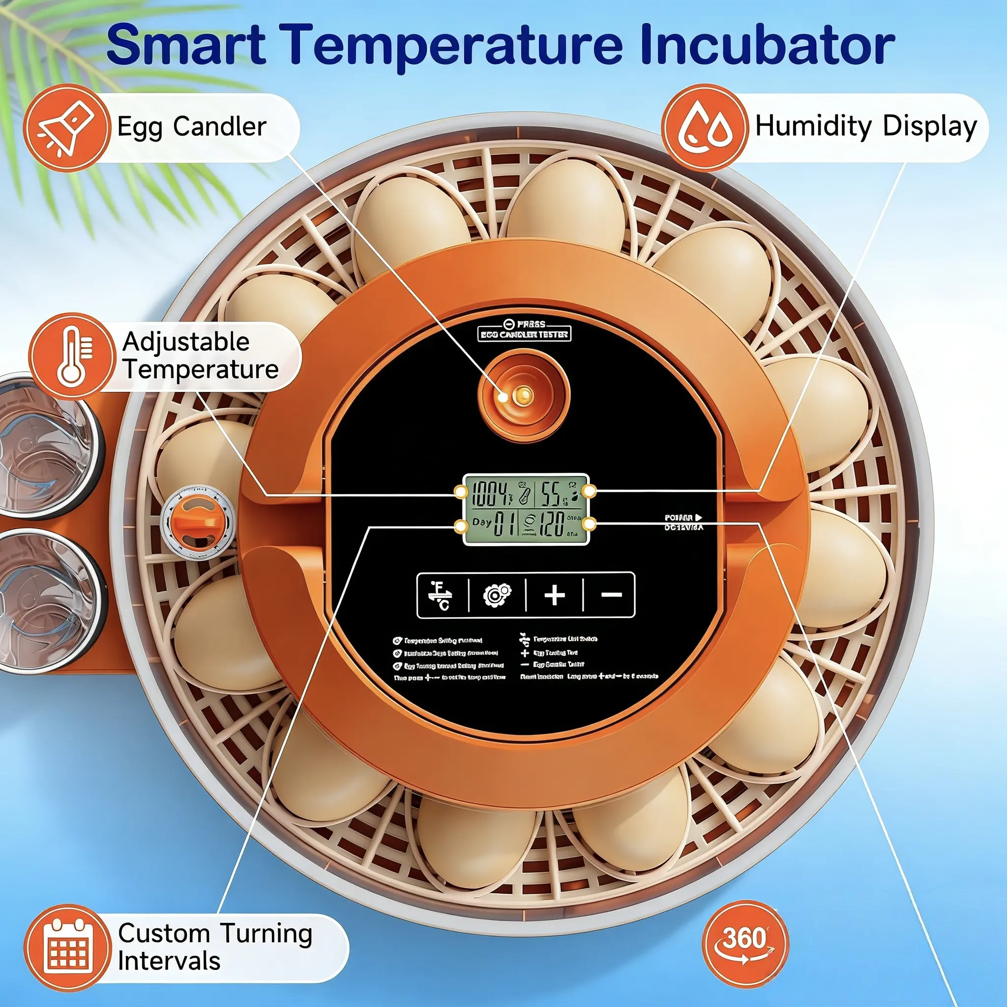 Comes with a bright LED candling function and a fully transparent 360° viewing cover, allowing you to easily observe embryo development anytime. You can clearly track growth progress without disturbing the hatching environment.