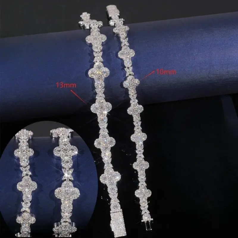 10mm Moissanite Clover Bracelet S925 Silver Iced Out For Men Women Hip Hop Jewelry Diamonds cross star Free ShippinGift