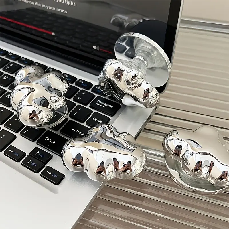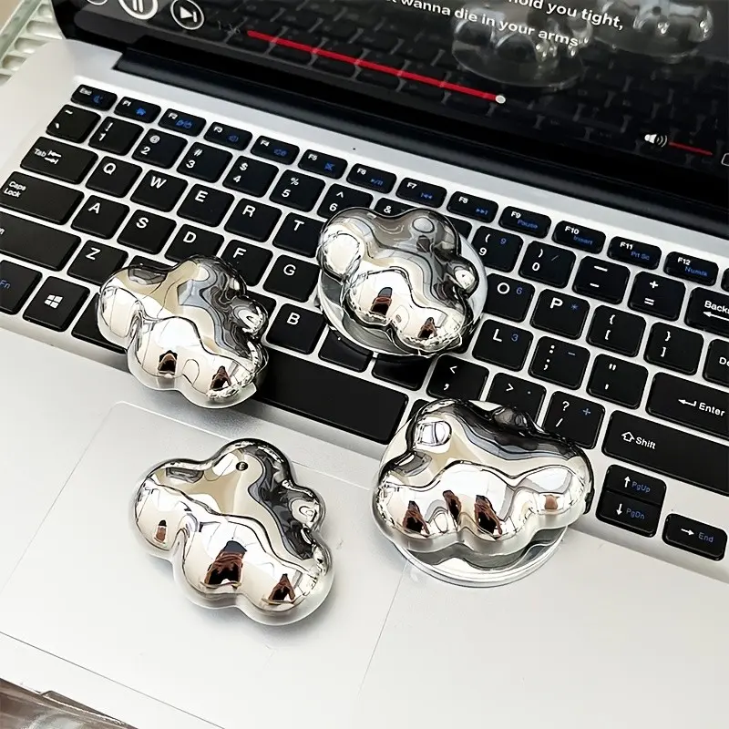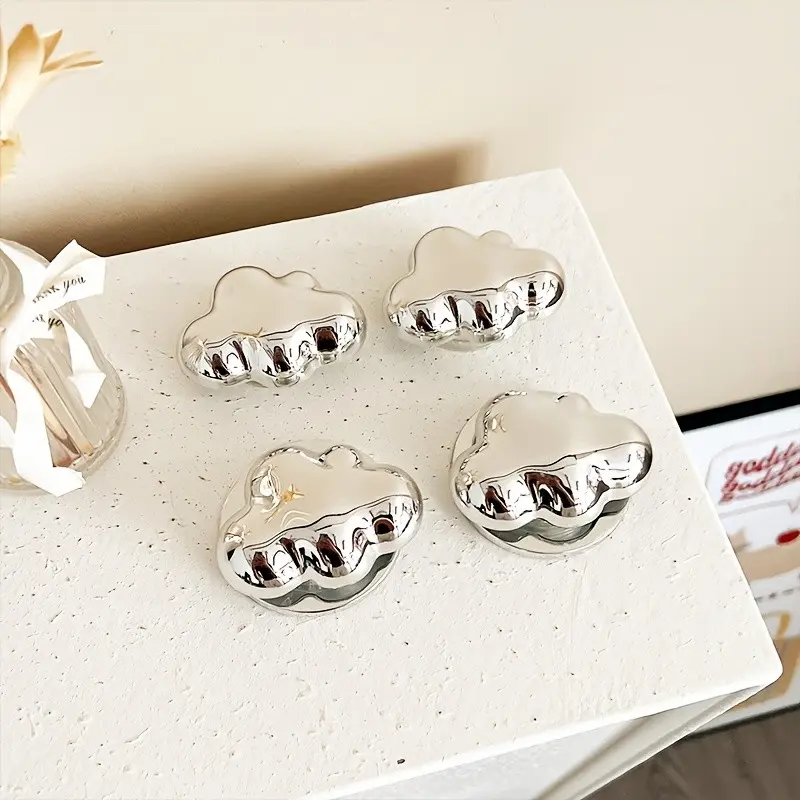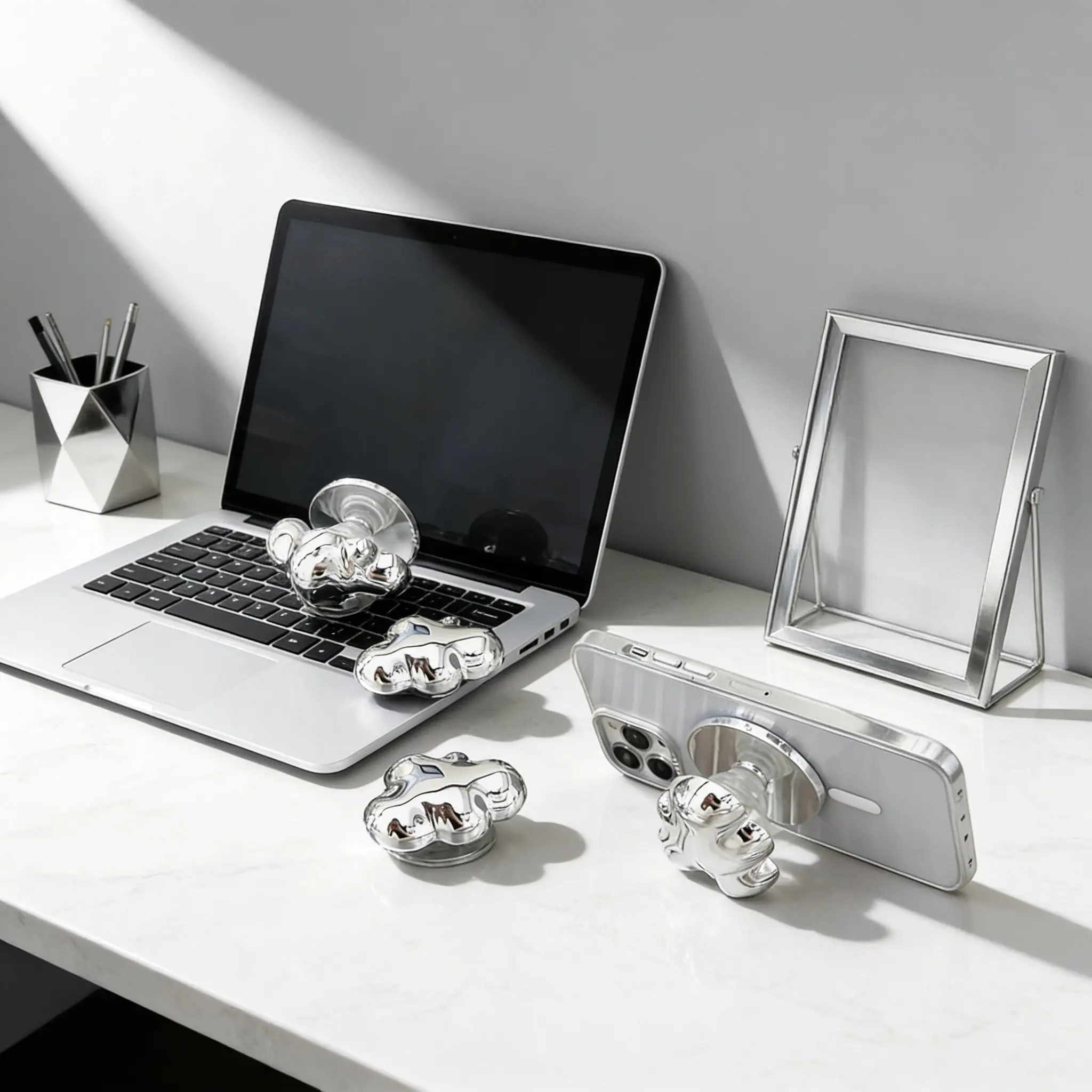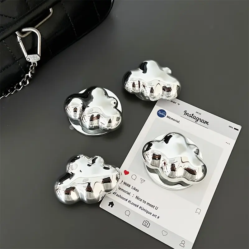 Advanced Electroplated Silver Cloud Magnetic Lazy Phone Stand, Foldable and Extensible Handle, Detachable Back Handle, Ideal Gift