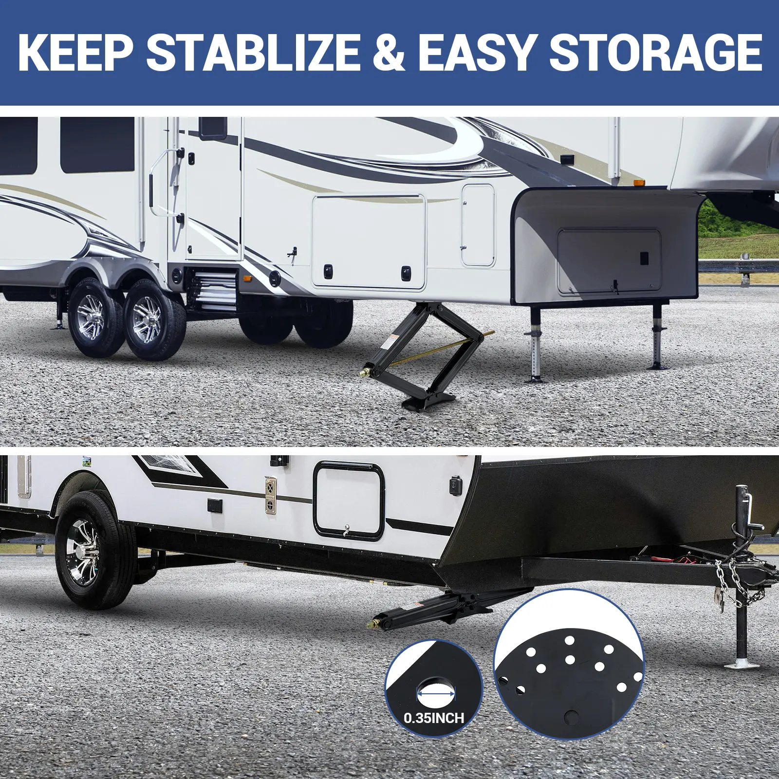 ·Impressive Capacity: Each scissor jack supports up to 5000 lbs (select variants up to 7500 lbs), ensuring reliable stabilization for most RVs, trailers, and campers.