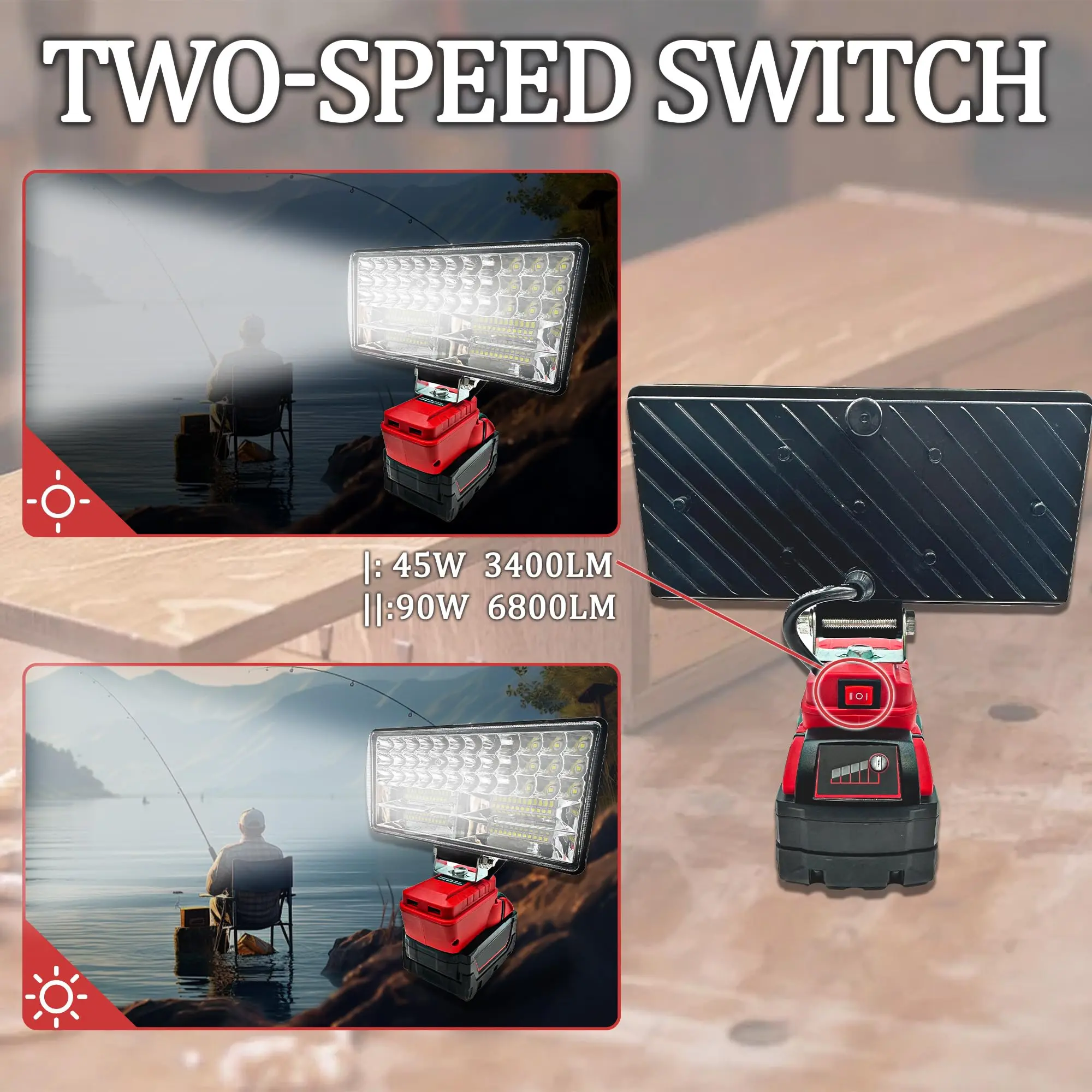 Wireless LED Spotlight, 3-8 Inch LED Light, Compatible with 20max Dewalt Battery, Dual USB Charging Port, Camping, Car Repair, Emergency Lighting