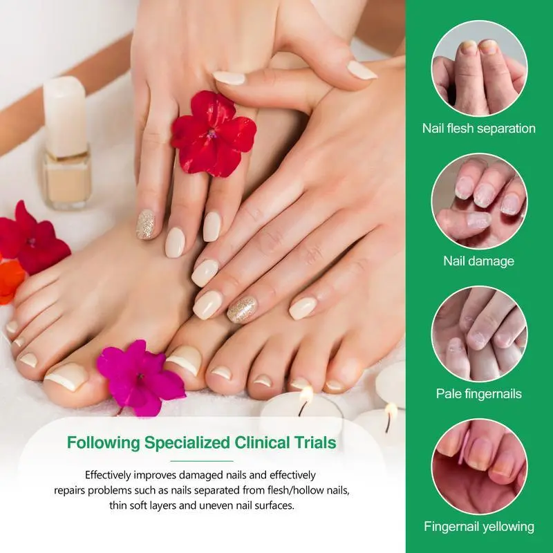 【Nourishes and Promotes Nail Growth】 Saygoodbye to brittle nails with our potent serum thatsupports healthy nail growth from the roots