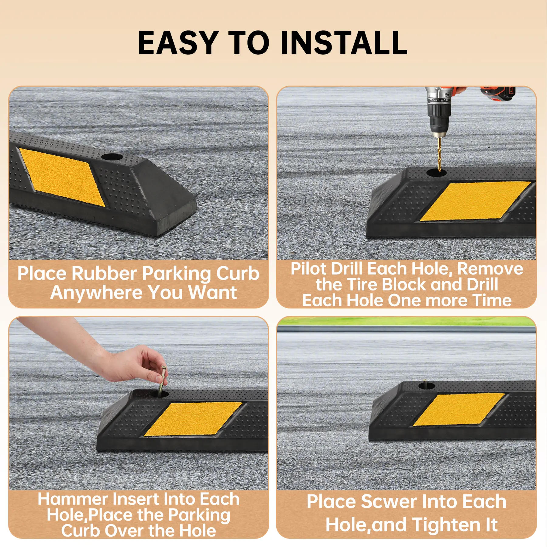 1. Ensure the rubber parking curb is securely installed using the pre-drilled holes for maximum stability.