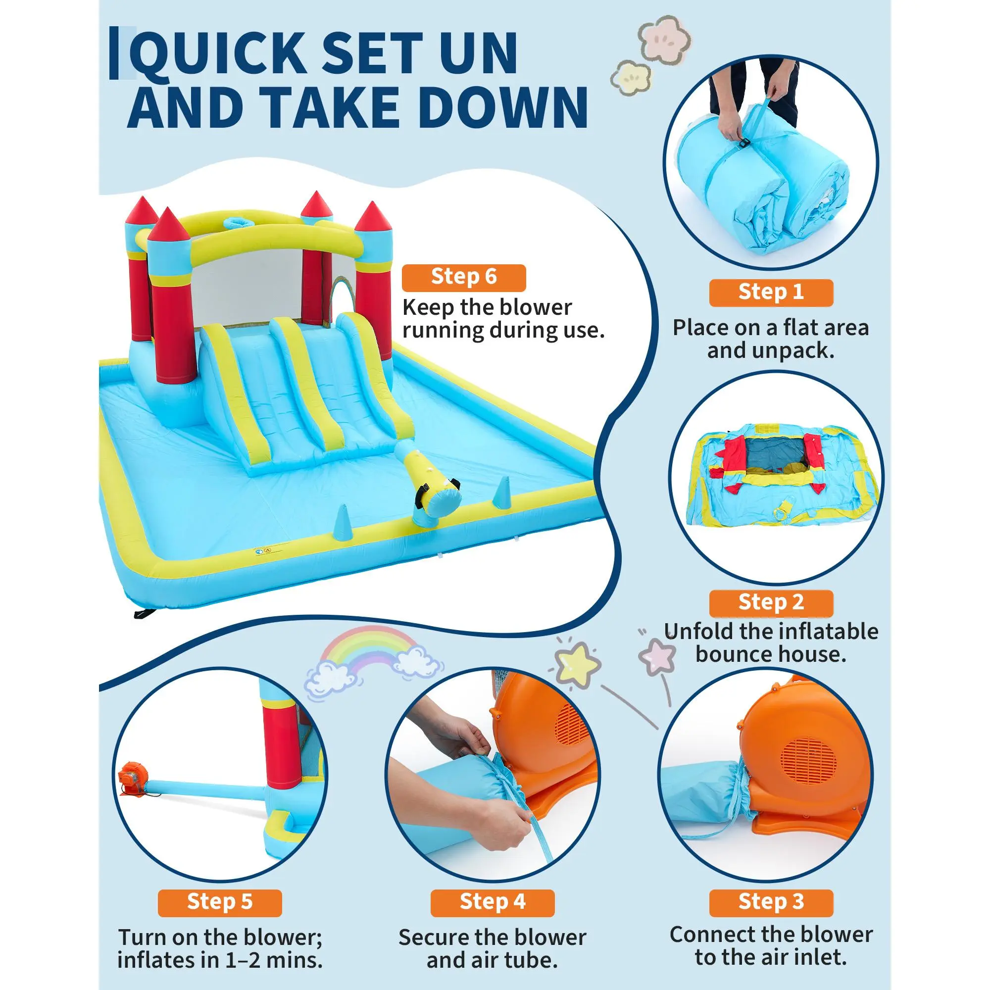 ·5.Complete Accessory Set: Includes carrying bag, repair patches, basketball, water hose, water guns, ring toss, and stakes for easy setup and storage.