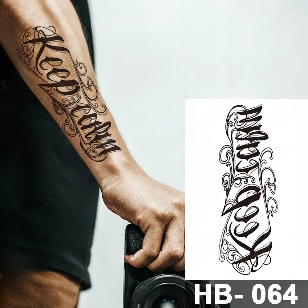 Handwritten font waterproof temporary tattoo sticker text word Chicano letter tattoo arm shoulder fake tattoo suitable for women and men