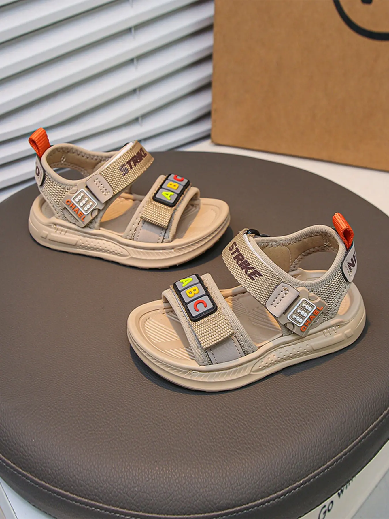 Baby Boys' Abc Letter Print Sandals, Breathable Mesh with Adjustable Velcro Straps, Anti-Slip Soft Sole, Summer Outdoor Walking Shoes