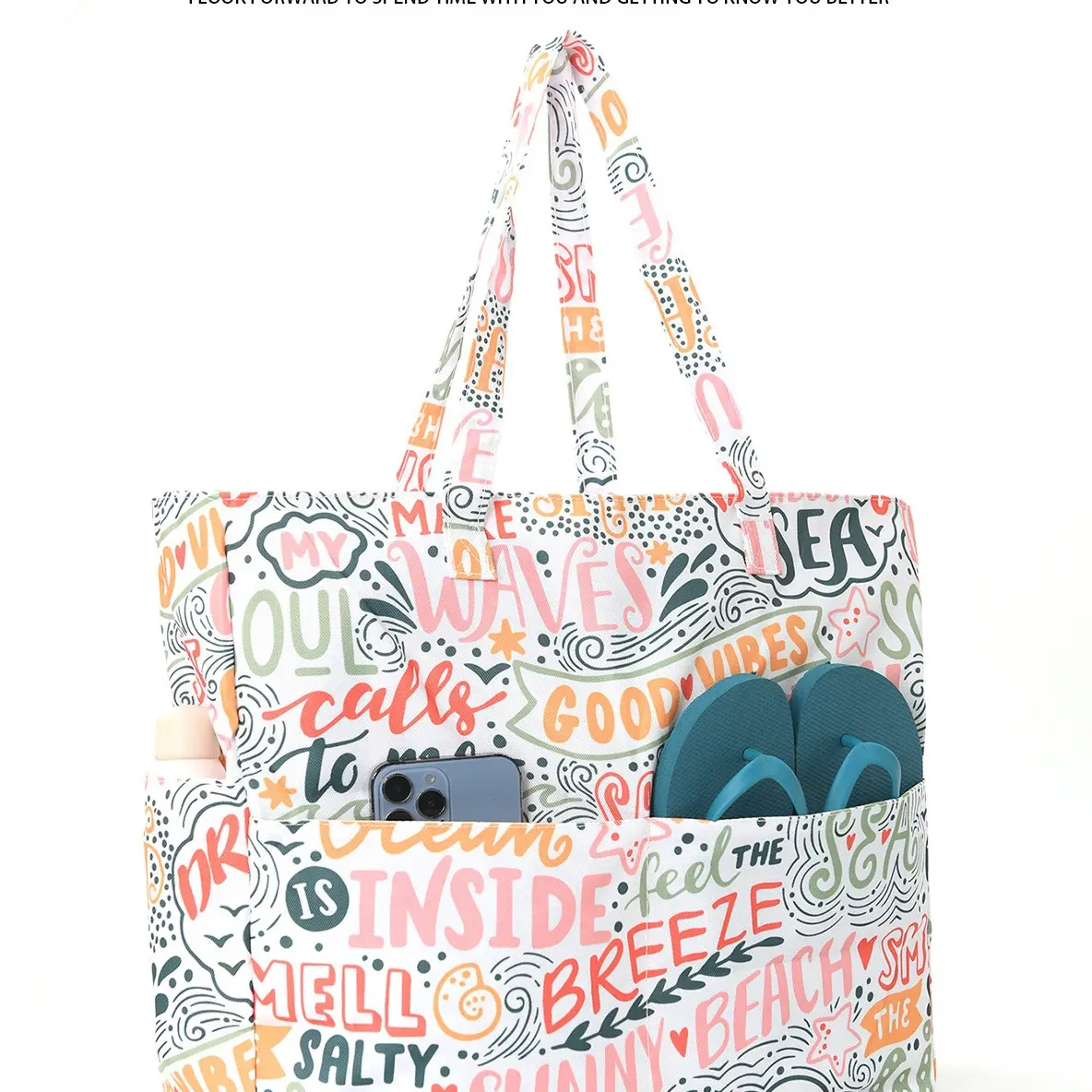 1pc Large capacity beach bag, hand-held printed high aesthetic storage bag, fashionable and versatile,
