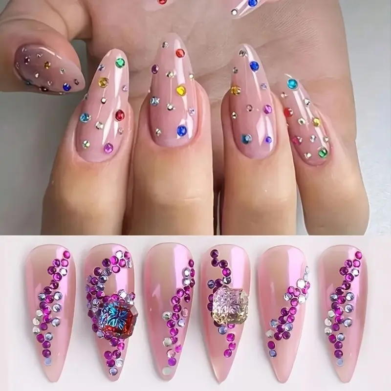 【Vibrant Colors】: Featuring colorful rhinestones for nail art, adding a pop of color to any manicure.